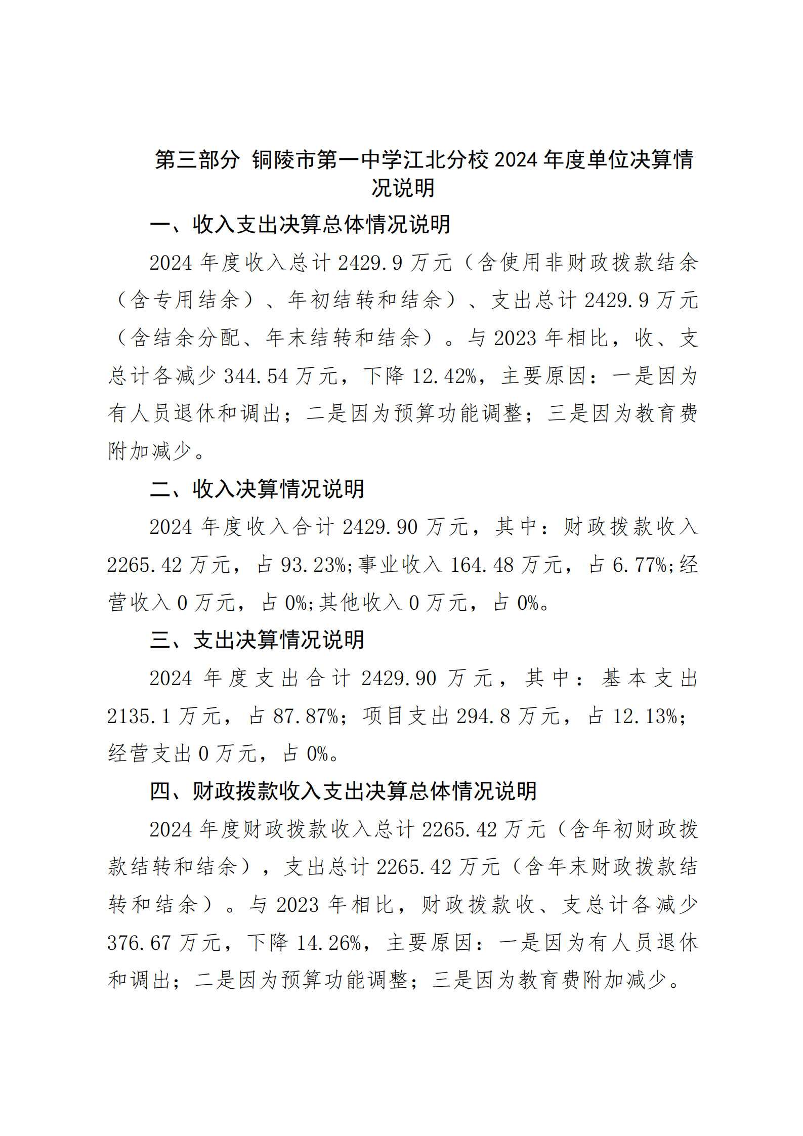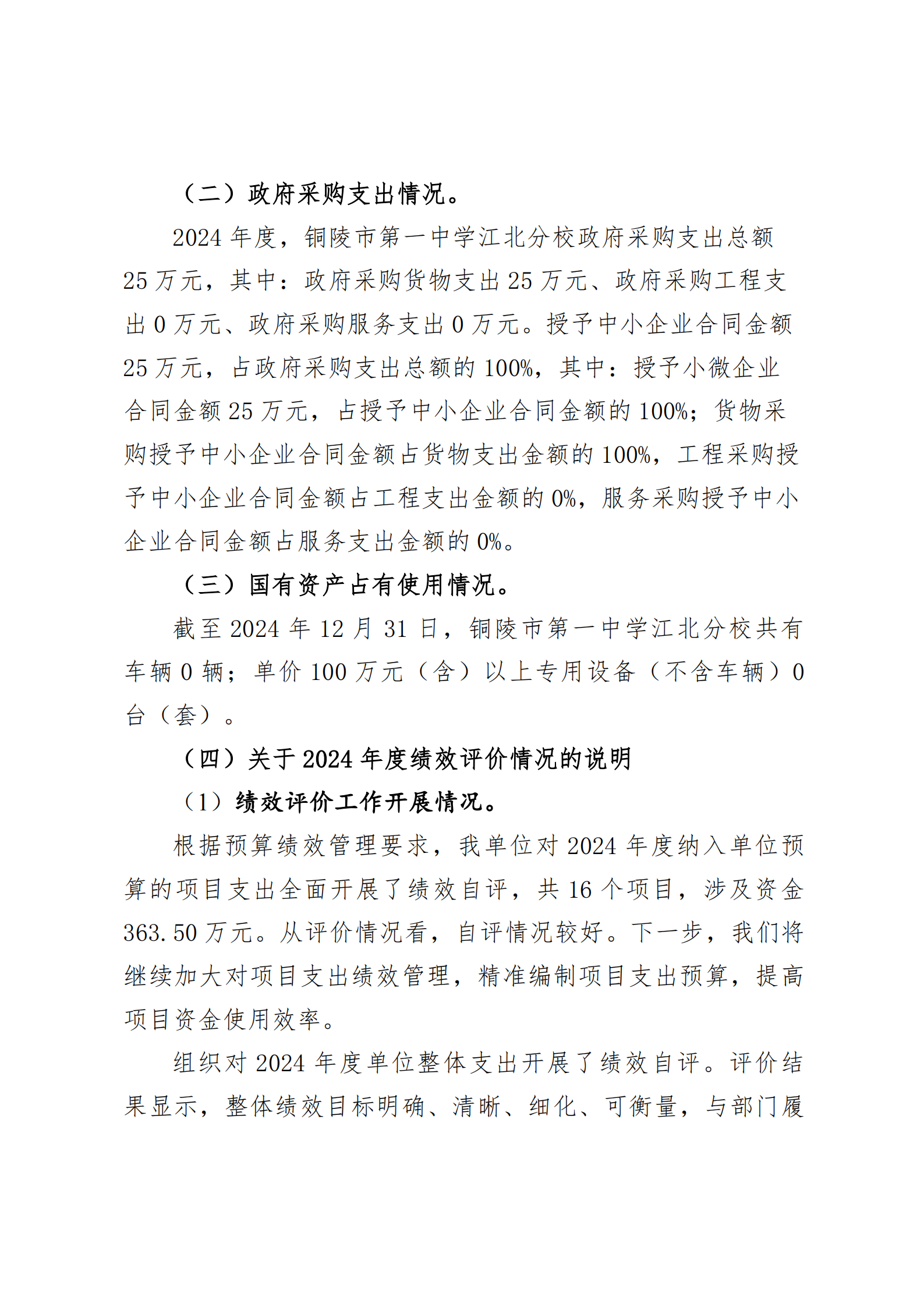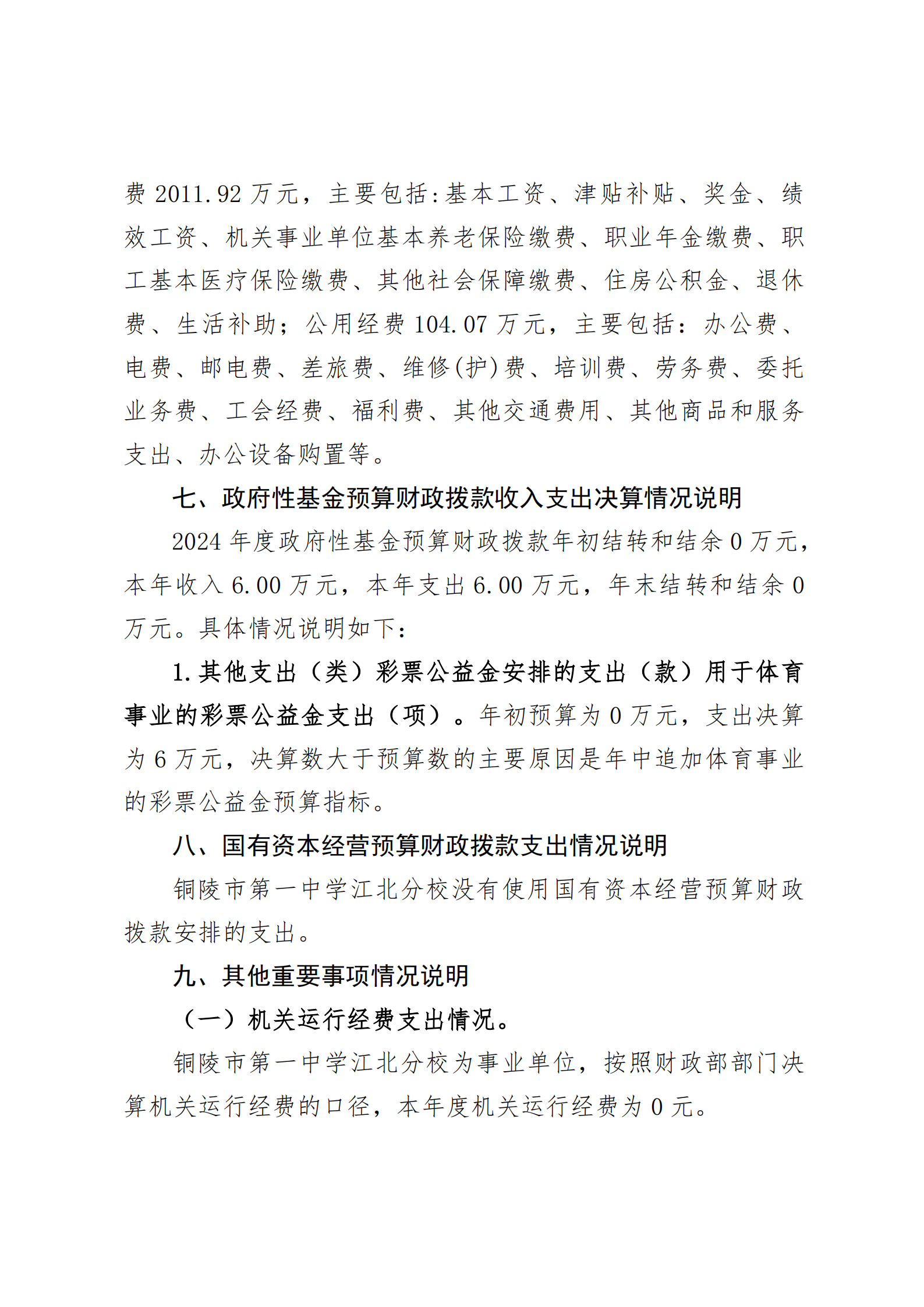 铜陵市第一中学江北分校2024年度一般公共预算财政拨款“三公”经费支出决算
