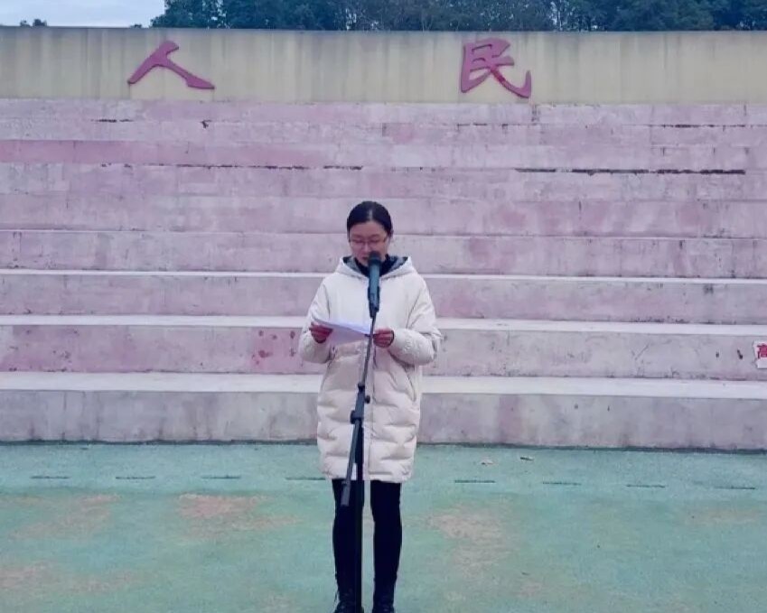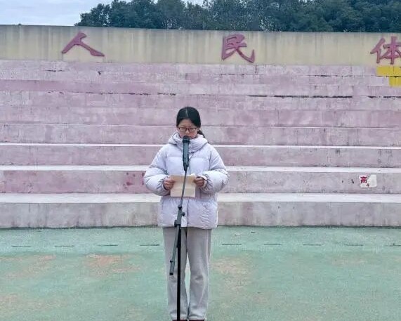 学生代表302班吴梦琪以《阳光心理,健康人生》为主题,发表了热情洋溢的国旗下讲话。她结合青春成长中的常见情绪,如考试失利的失落、人际矛盾的委屈等,鼓励同学们正视情绪波动,学会通过接纳自我、调节情绪、积极社交和热爱生活来积攒内心阳光。她指出,健康的人生需要强大的心理支撑,要以阳光心态面对成败,把困难当作成长的阶梯,努力锤炼心理素质,为未来积蓄力量。