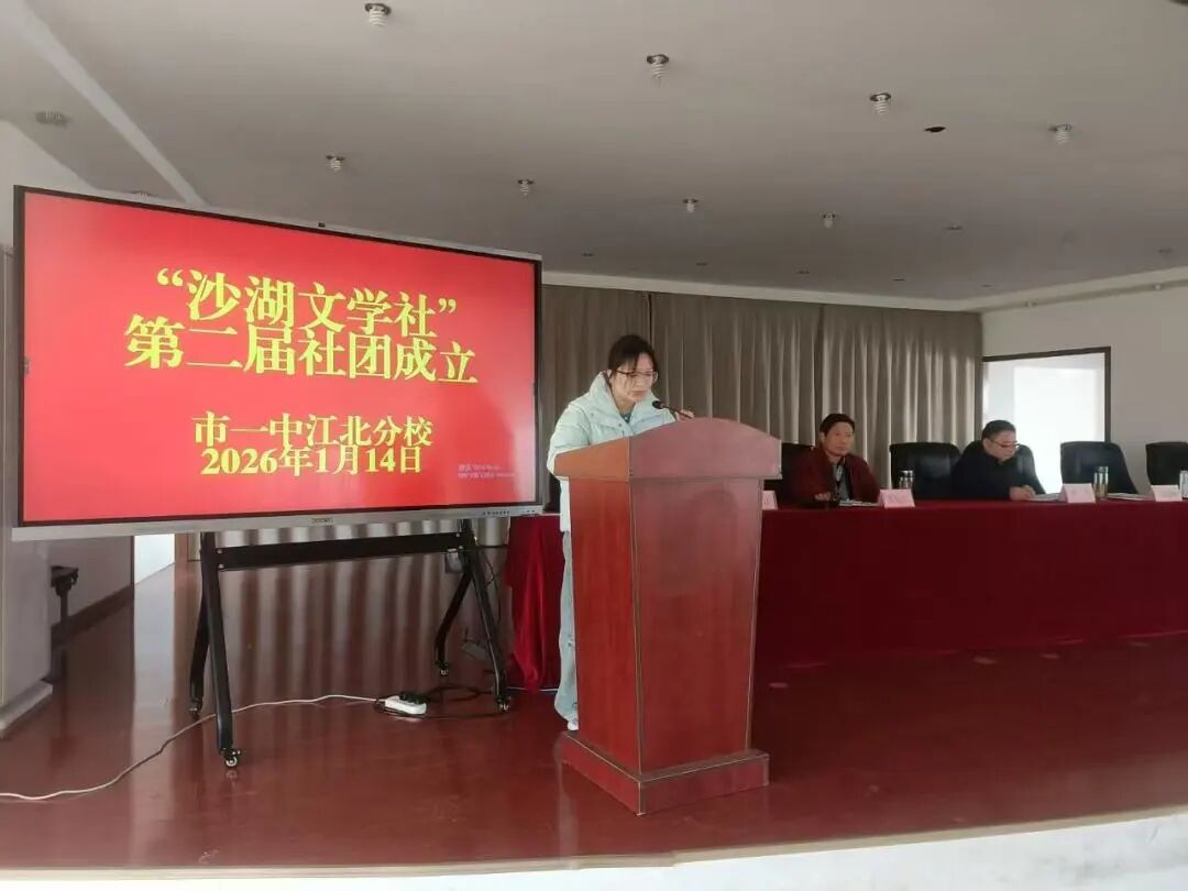 紧接着,“沙湖文学社”指导教师代表胡淑平宣读活动章程。她从指导思想、组织机构、活动形式、工作安排及讯息展示等五个方面进行了细致解读。她希望全体社员能严格遵守,积极践行,让“沙湖文学社”成为大家以文会友、笔耕不辍的沃土,用文字记录高中时光的热烈与温柔,把平凡的日子写成诗,让青春在笔尖熠熠生辉!