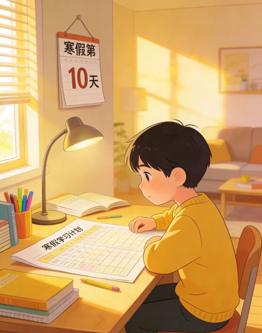 1. 科学制定计划:与孩子共同协商制定寒假计划表,明确学习、休息、娱乐、运动的时间分配,养成规律作息,避免假期“作息紊乱”,保持良好的学习与生活节奏。