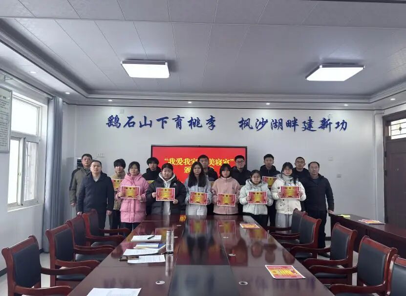 表彰会上,政教处副主任汪永忠首先宣读了《市一中江北分校关于表彰“最美寝室”的决定》。本次活动经过严格的卫生检查、文化展示及综合考评,最终评选出了一批表现突出的寝室。随后,在热烈的掌声中,校团委副书记姚海军为获奖寝室代表颁发了荣誉证书,并合影留念。一幅幅奖状,一张张笑脸,承载着同学们共建美好“家园”的汗水与智慧。