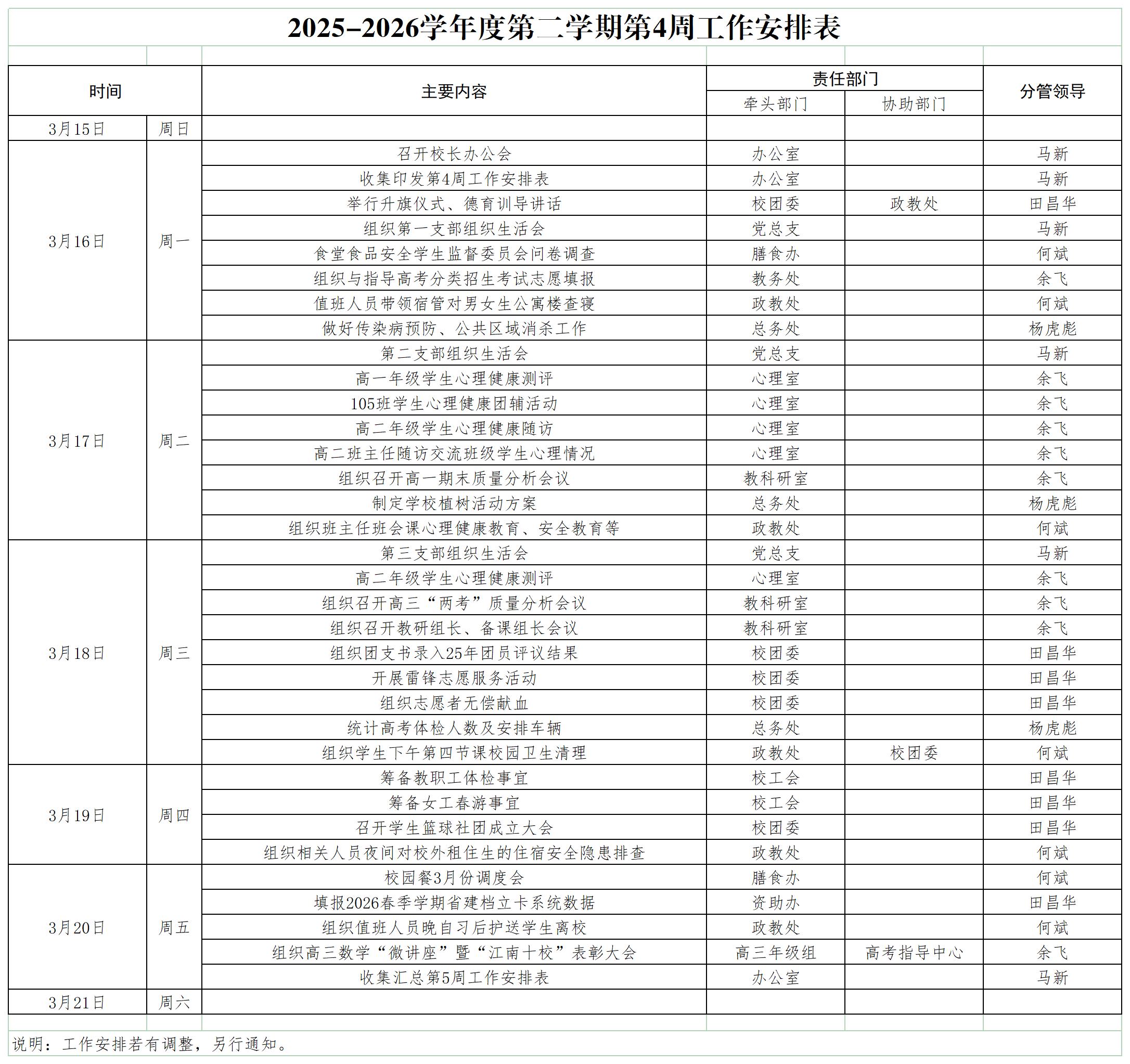 2025-2026学年度第二学期第4周工作安排
