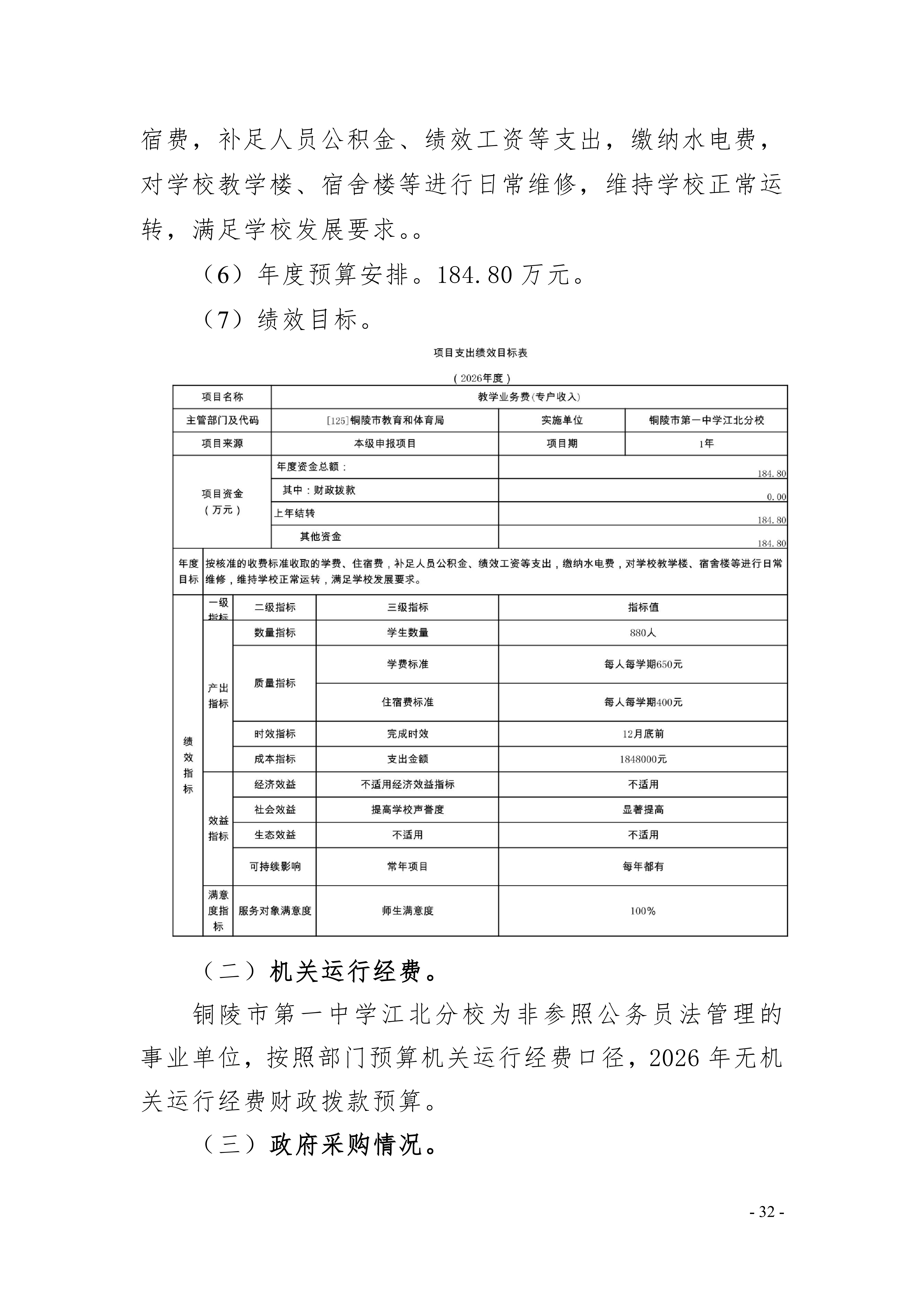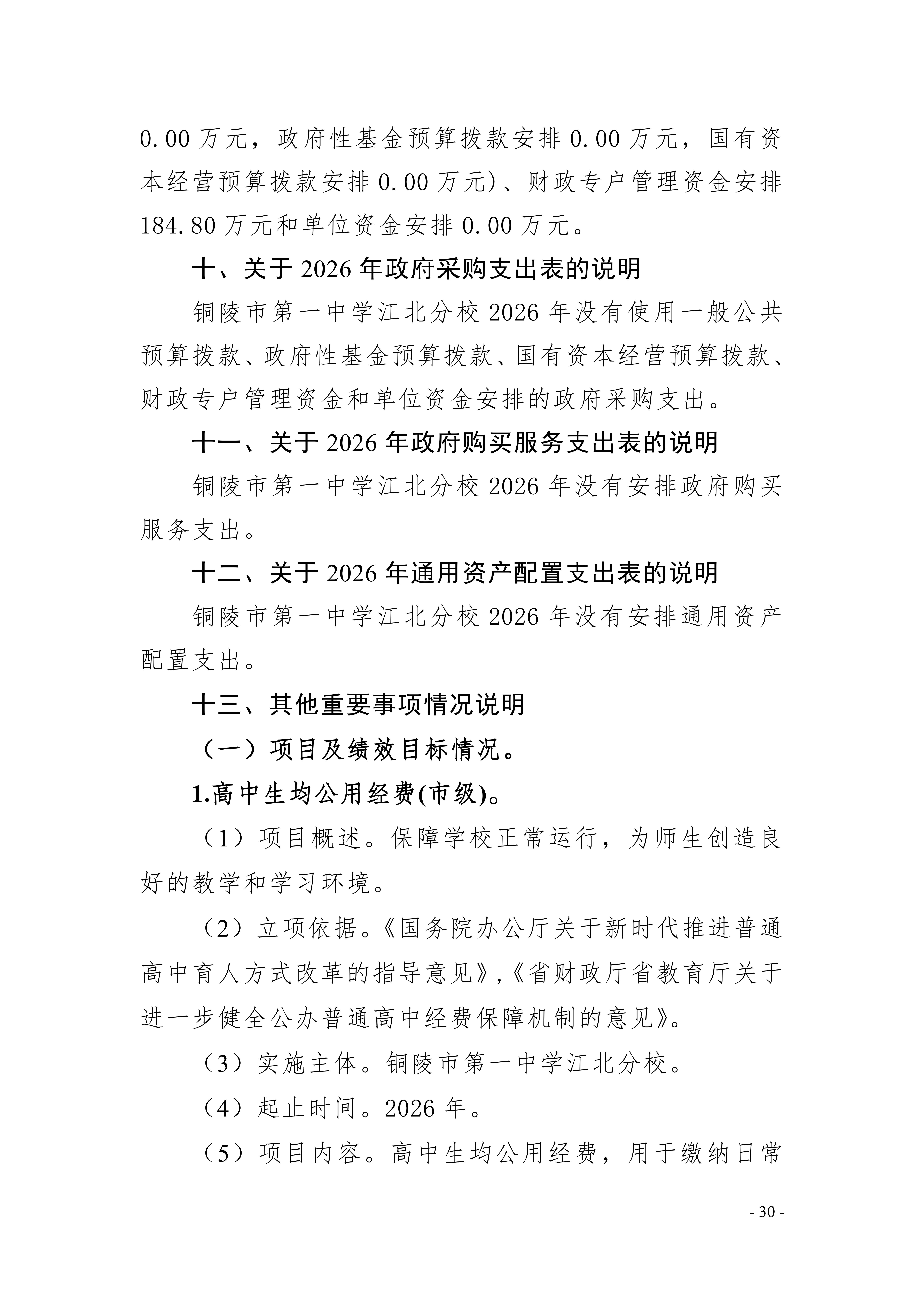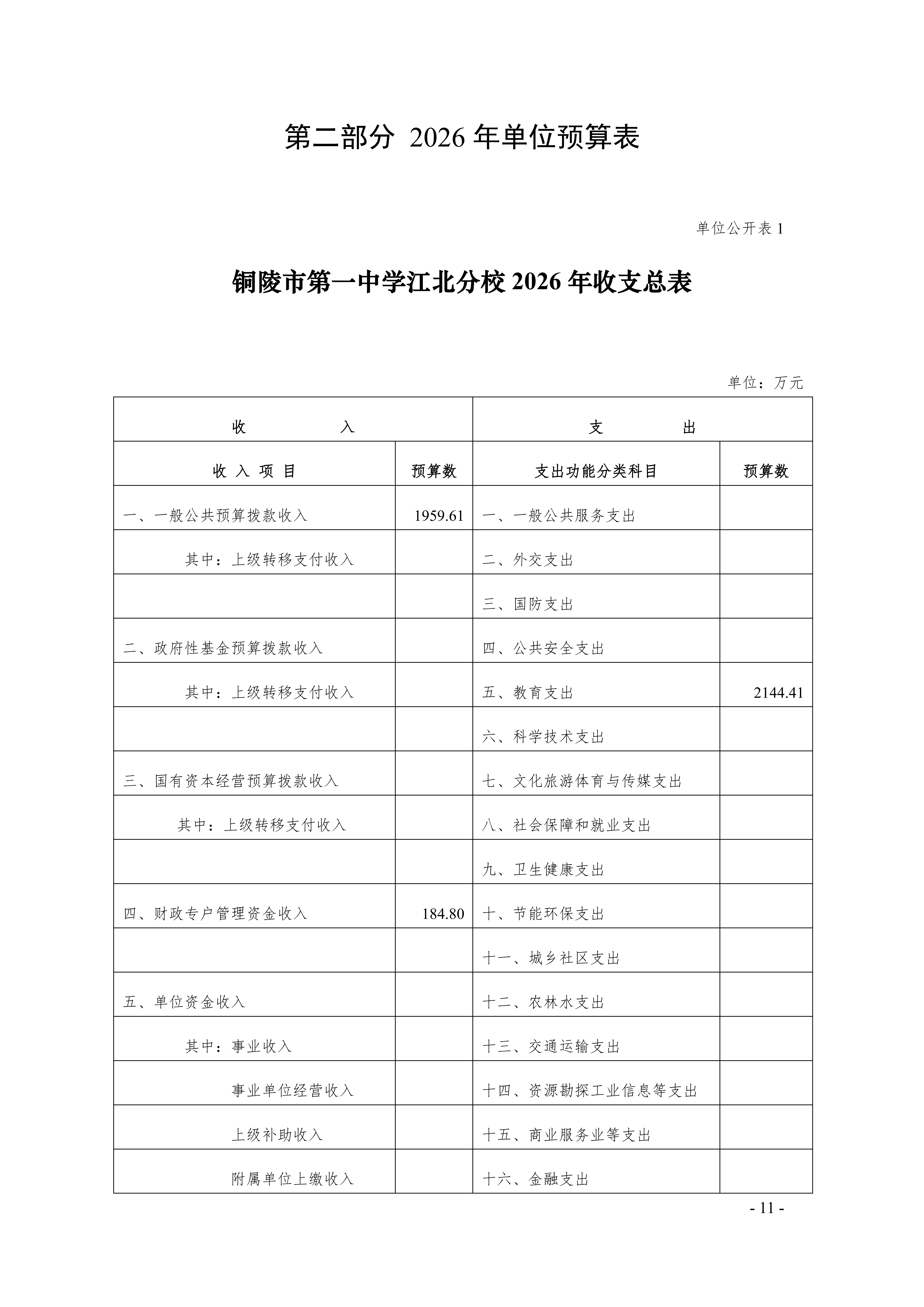 2026年铜陵市第一中学江北分校单位预算公开