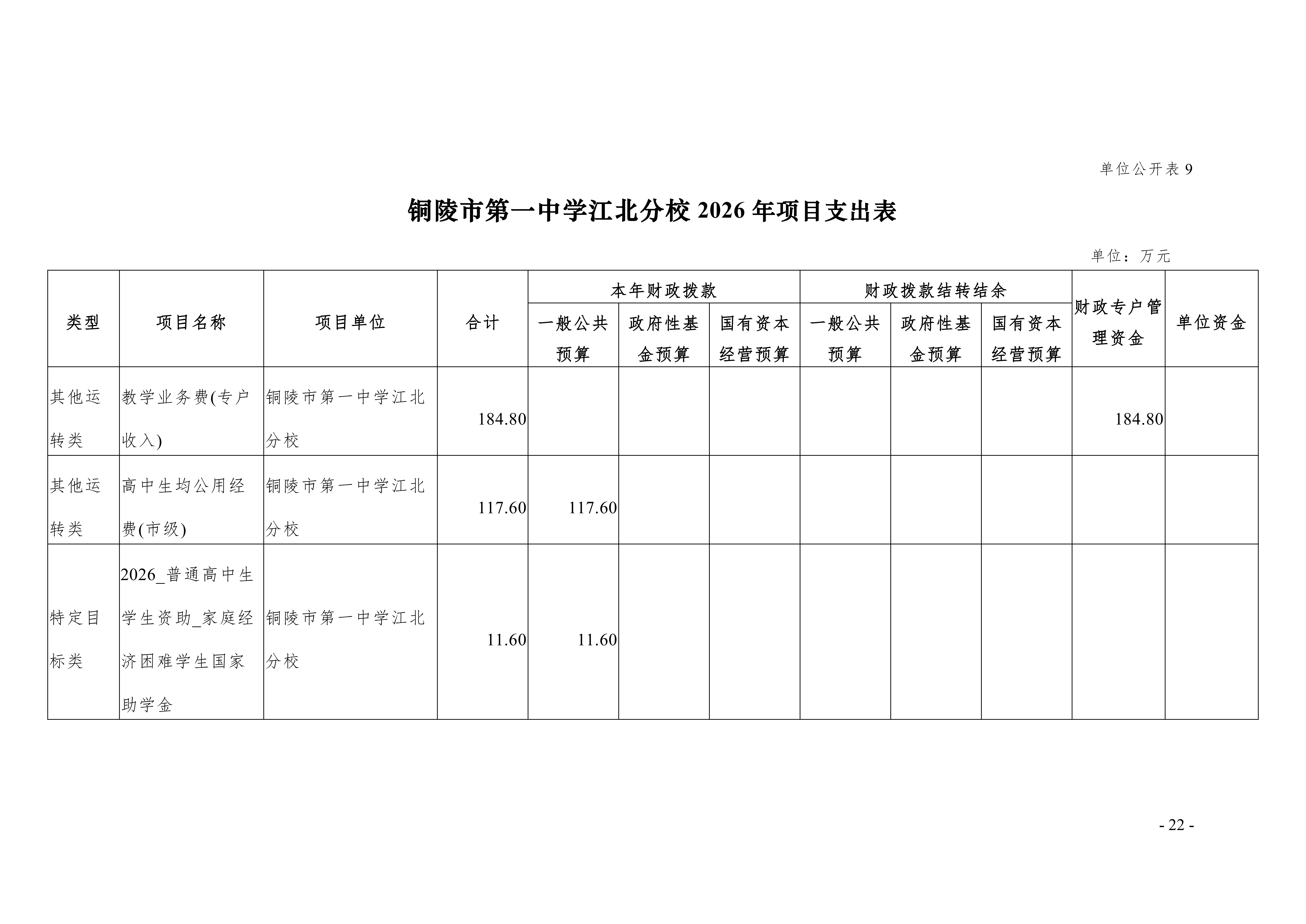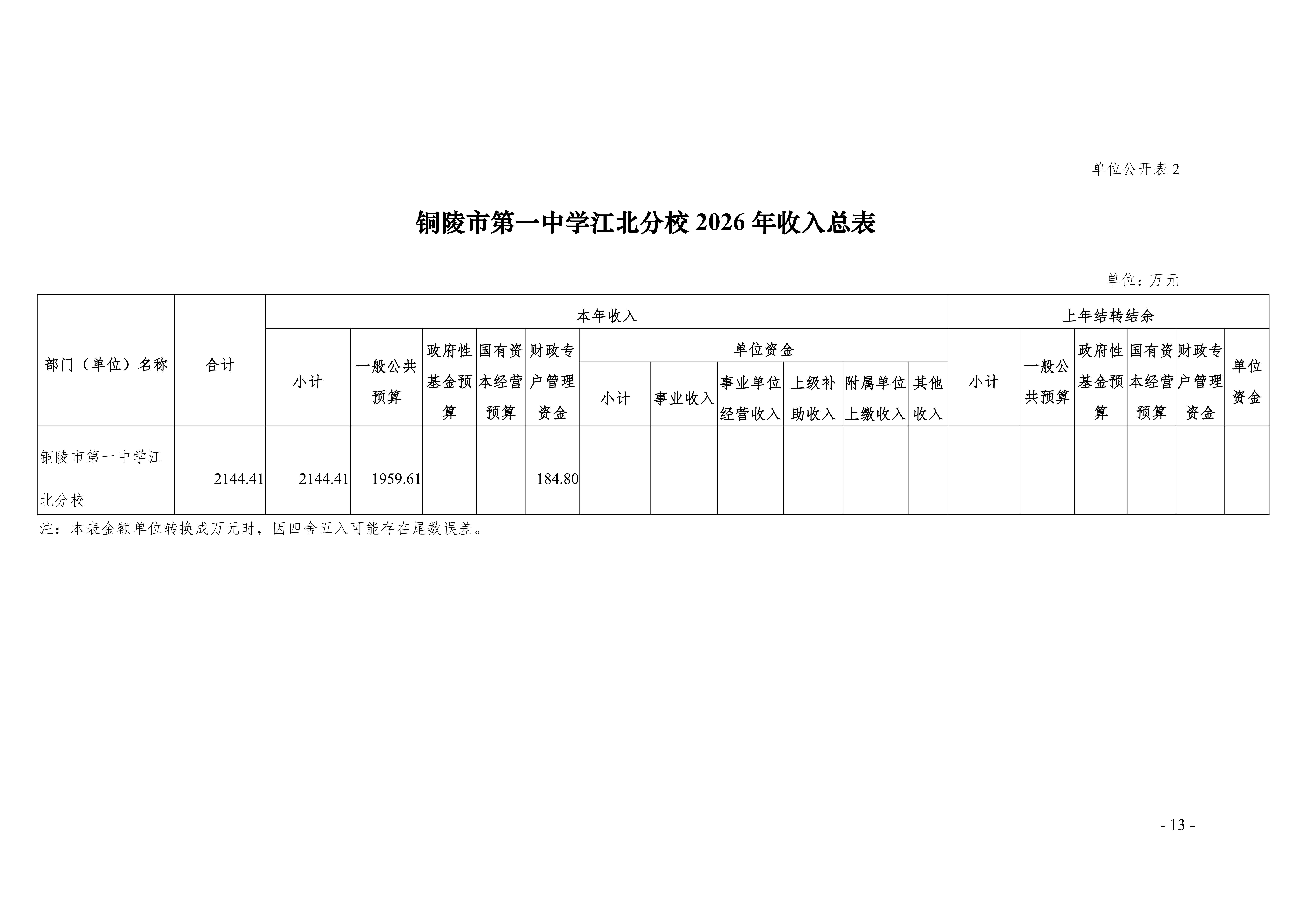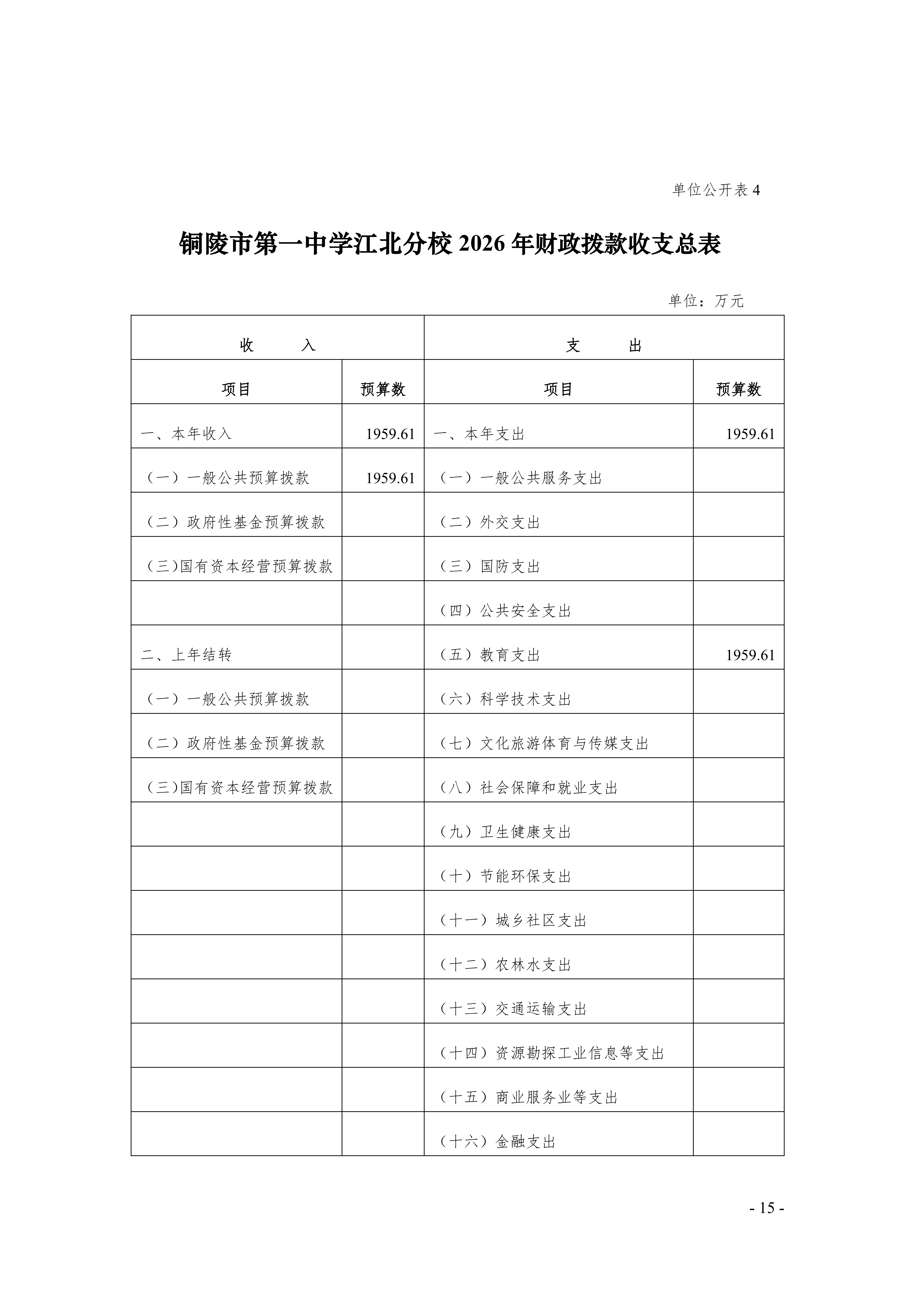 2026年铜陵市第一中学江北分校单位预算公开