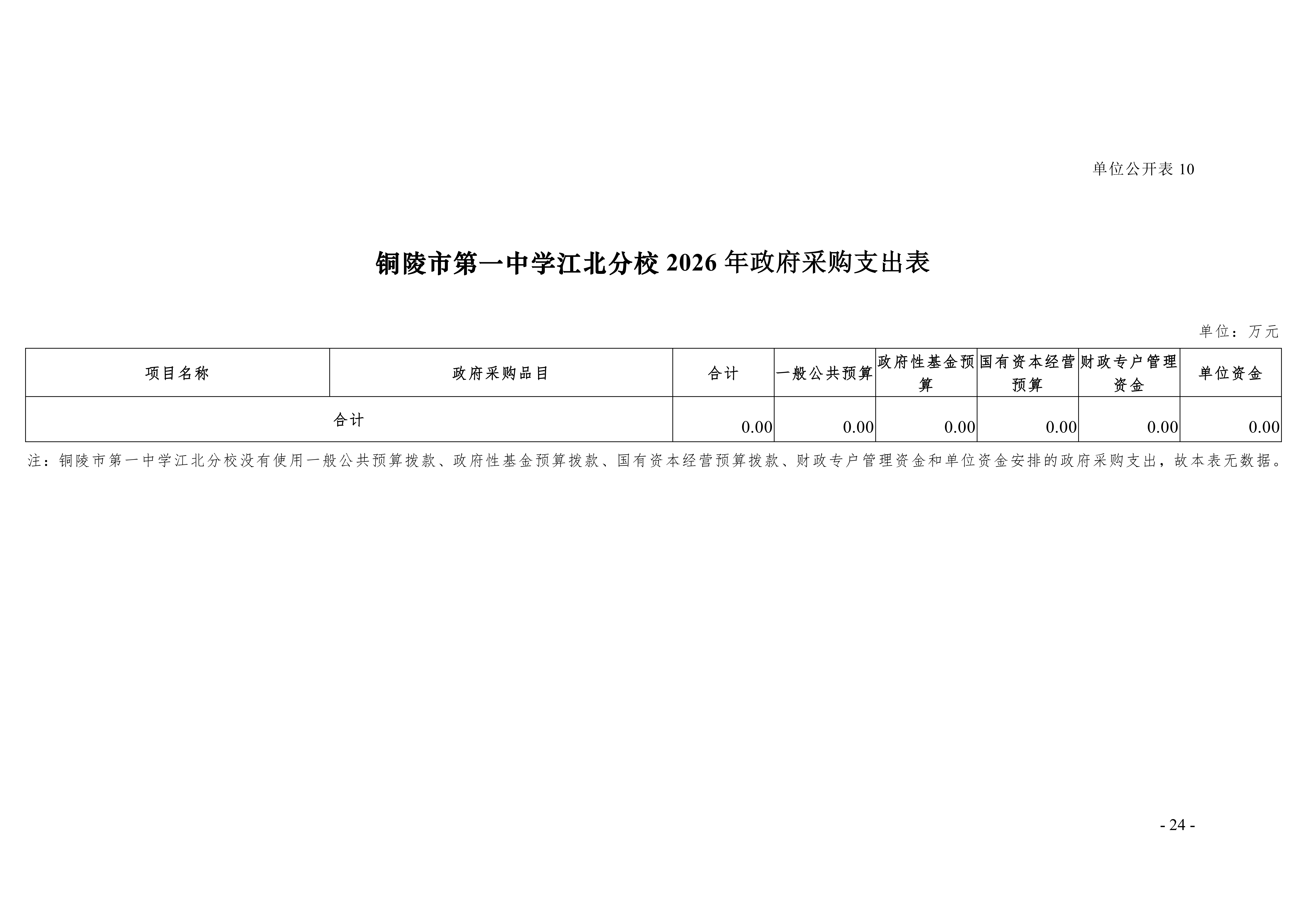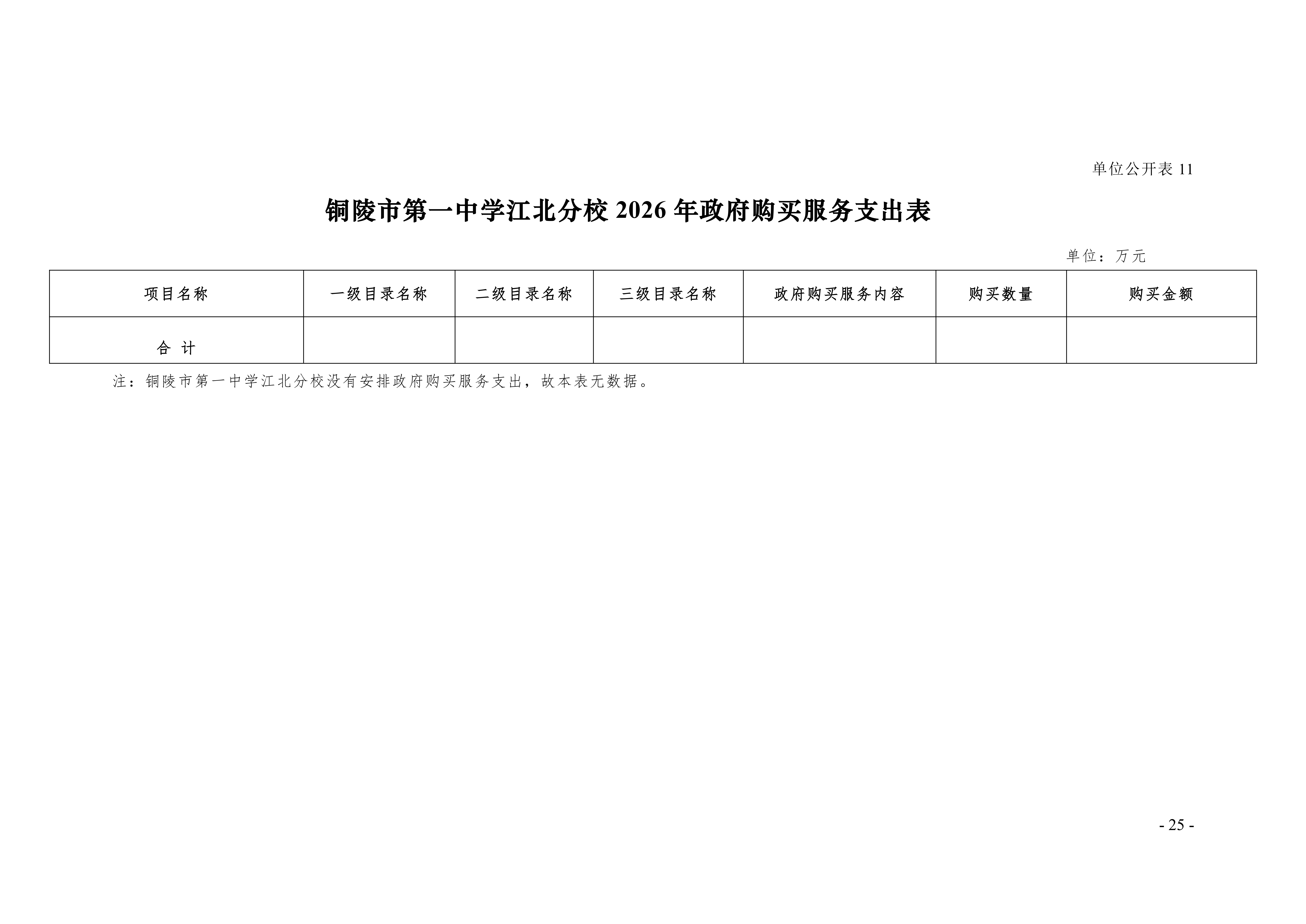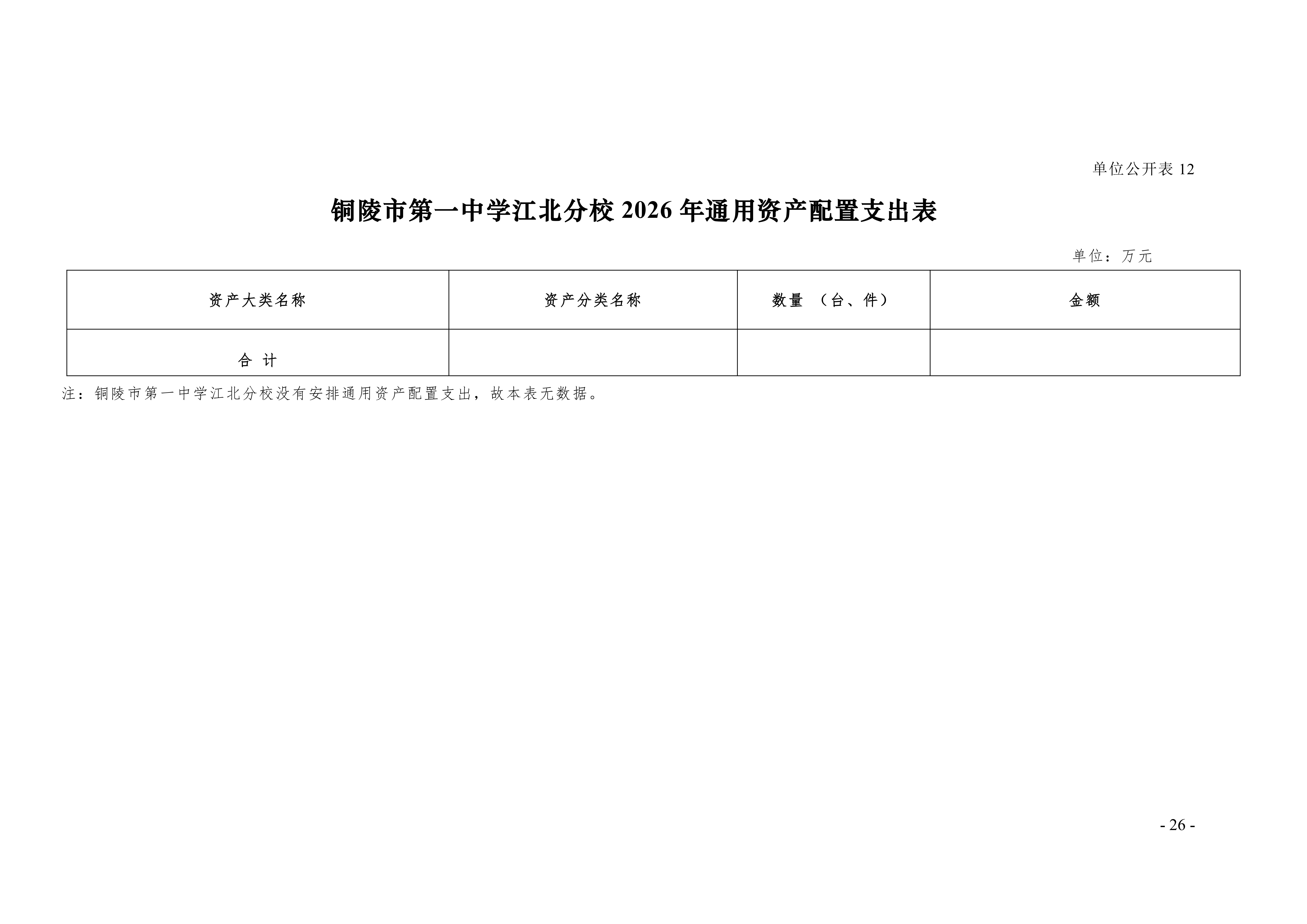2026年铜陵市第一中学江北分校单位“三公”经费预算公开