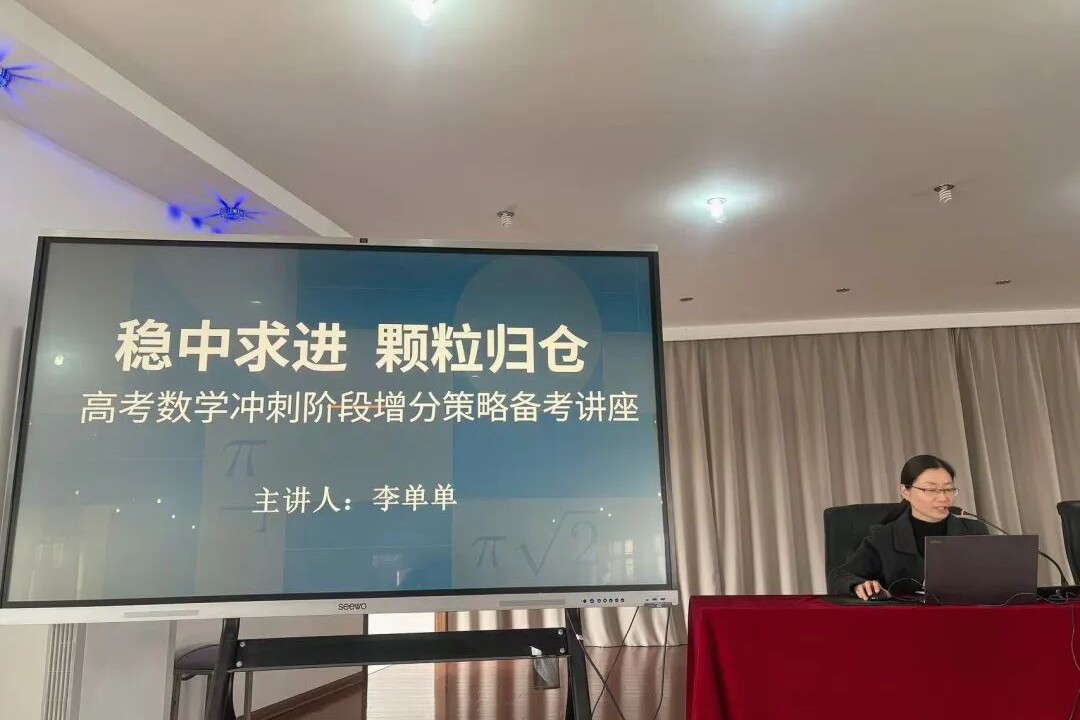 活动伊始,铜都青年英才教师、铜陵市骨干教师、校办公室副主任李单单老师为全体高三学生作题为《稳中求进,颗粒归仓——高考数学冲刺阶段增分策略》的微专题讲座。结合多年教学实践与最后两个月的备考特点,她从心态与方向、复习策略、答题技巧、应试策略、心态调适五个方面,系统阐述了数学冲刺阶段的科学备考路径。
