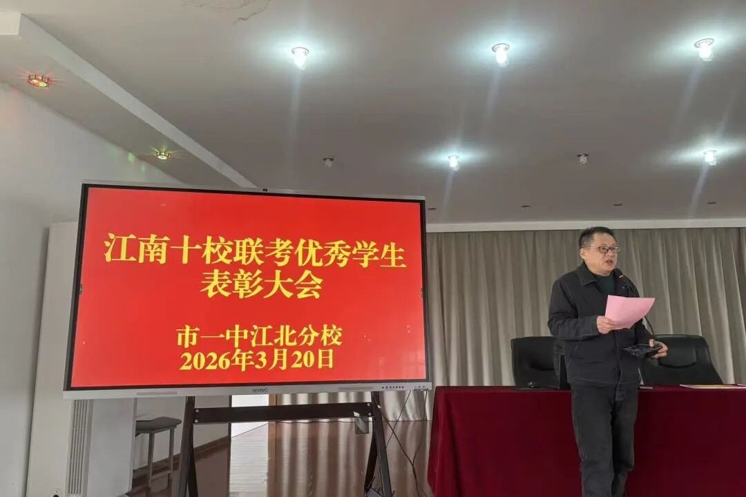 随后,教科研室主任唐传毅宣读江南十校联考优秀学生表彰名单,校领导为获奖同学颁发奖状,现场气氛庄重热烈,榜样力量深入人心。