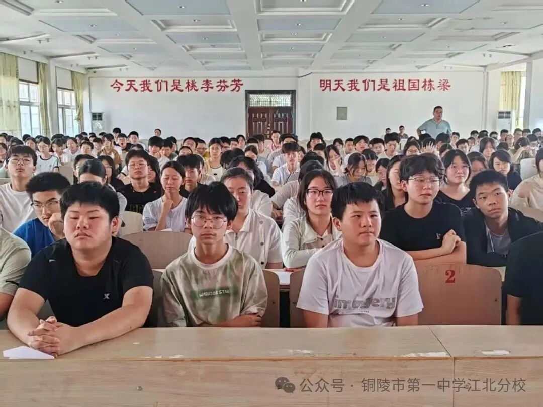 凝聚共识,扬帆起航。政教处副主任汪永忠作总结发言。他勉励全体新生将校长的嘱托转化为实际行动。汪主任表示:“新的号角已吹响,新的风帆已扬起。希望同学们珍惜在铜陵市一中江北分校的每一天,以校训为指引,用勤奋书写青春,用探索定义未来!”他的话语激励着在场每一位新生,现场掌声雷动,青春誓言响彻校园。