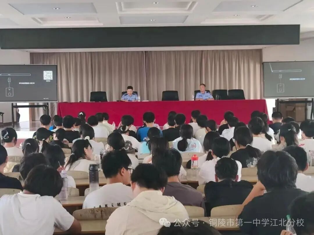为进一步加强青少年法治教育,提升法律意识与自我保护能力,营造平安和谐的校园环境,8月29日,市一中江北分校邀请市郊区周潭派出所干警来校开展法治教育讲座。活动以普法宣传为核心,旨在引导学生树立正确法治观念,筑牢校园安全防线,全体高一年级新生参加了活动。