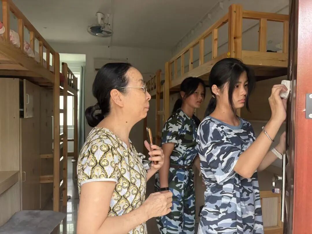 从“空间利用小妙招”到“对称折叠法”、“宿舍卫生防病知识”,活动现场,教师们各展所长,全方位开展指导。军训教官们规范演示了军用被子的叠法,引得学生们阵阵赞叹。这种跨课堂的生活教学,拉近了师生距离,建立了亦师亦友的亲密关系。