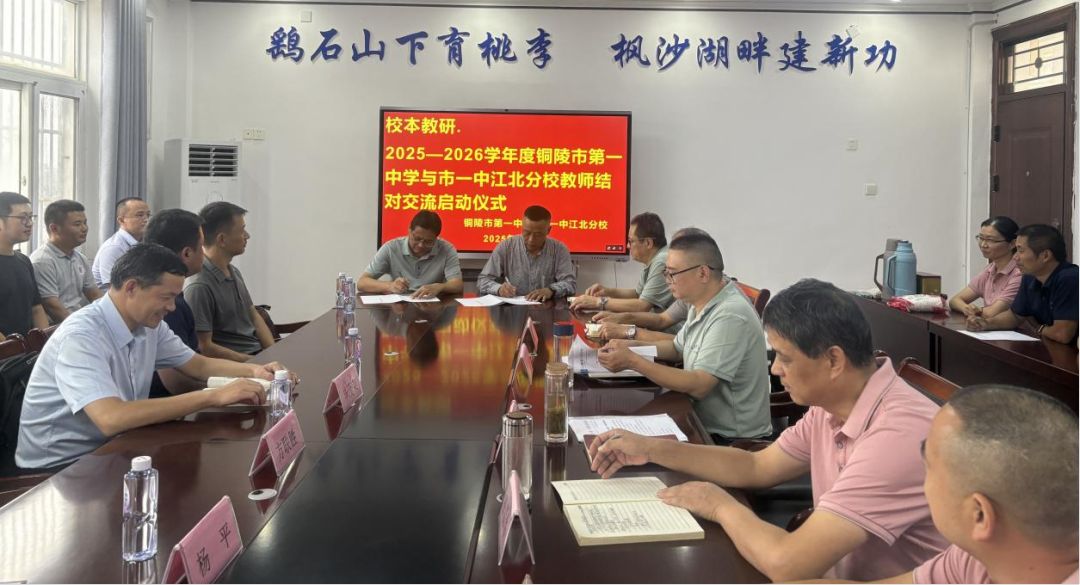 为贯彻落实《安徽省“十四五”县域普通高中发展提升行动计划》《铜陵市教体局关于组织实施普通高中结对共建项目的通知》文件精神,9月9日,我校与市一中开展第五届教师结对交流工作启动仪式暨2025—2026学年度语文等学科(第一期)高三一轮学法探究活动。铜陵市第一中学党委副书记、校长方联胜,教务主任毕茂荣、教科室主任杨平等17位教师,市一中江北分校党总支书记马新、校长余飞等校领导、教科研室、结对交流教师等参加了启动仪式活动。