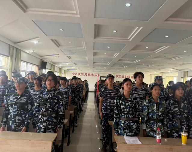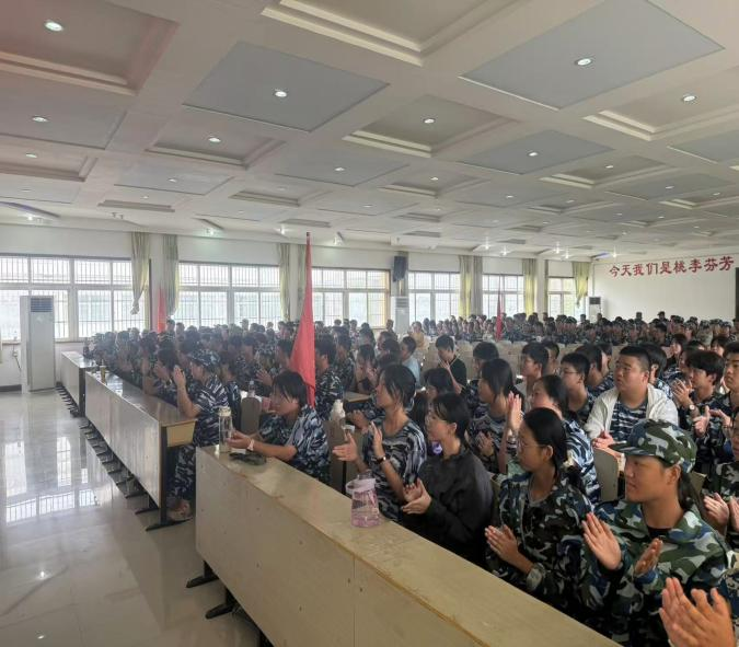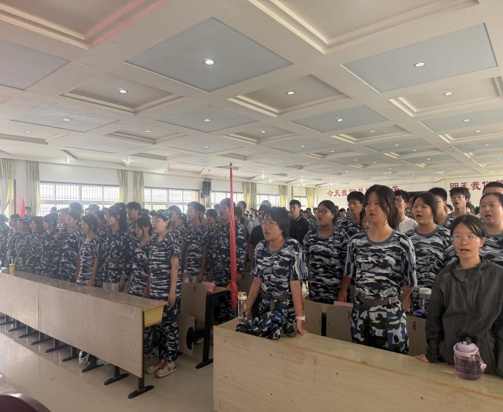 庄严启幕,国歌嘹亮,凝聚初心。大会在雄壮的国歌声中拉开帷幕。全体师生肃立,高唱国歌,同学们挺立的脊背如青松傲立,身着迷彩服更显精神抖擞。国歌的旋律如战鼓激荡,这一刻,爱国情怀与责任担当在年轻的心中悄然生根。
