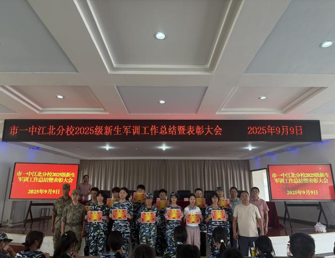市一中江北分校举行2025级新生军训工作总结暨表彰大会