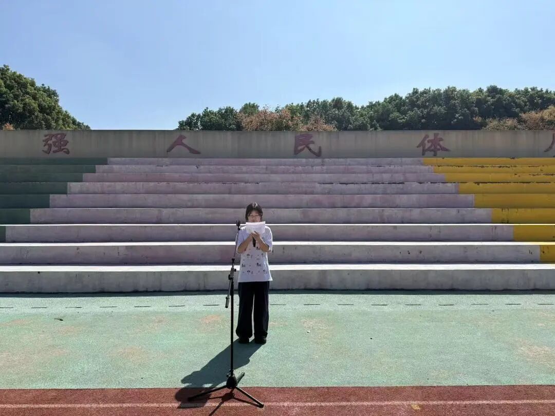 青春誓言,激荡人心。升旗仪式后,学生代表306班徐松吉发表了题为《凝聚青春力量,共赴时代之约》的国旗下演讲。她深情回顾了百年来中国青年在民族复兴征程中的担当与奉献,从五四运动的呐喊到抗疫一线的逆行,从边疆建设的汗水到科技攻关的坚守,一代代青年用行动诠释了“小我融入大我”的集体意识与时代责任。“青春不是孤立的年华,而是与时代同频共振的脉搏。”她呼吁全体同学:要珍惜当下宝贵的学习时光,勤学修德、锤炼本领;要坚定理想信念,将爱国情、强国志、报国行融入日常;更要以“天下兴亡,匹夫有责”的使命感,主动肩负起属于我们这一代人的历史重任。“时代的聚光灯已照亮前路,历史的接力棒正握在我们手中。唯有凝聚青春力量,方能共赴这场波澜壮阔的时代之约!”铿锵有力的话语点燃了全场师生的热情,掌声久久不息。