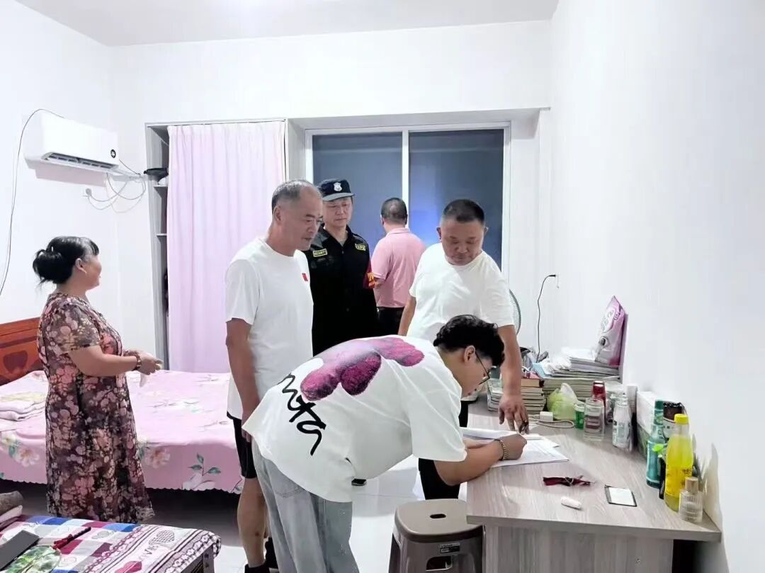 巡查过程中,巡查人员重点围绕三大核心开展工作:一是安全隐患排查,仔细检查出租屋的用电线路、燃气设备、消防器材等,及时提醒家长更换老化插线板、清理楼道杂物,从源头杜绝火灾、触电等安全风险;二是生活状态了解,走进学生房间查看学习环境与作息安排,鼓励学生保持规律作息,同时与家长沟通孩子在校外的饮食、心理情况,为家庭教育提供科学建议;三是家校需求对接,主动倾听家长在陪读过程中遇到的困难,比如课后辅导资源不足、租房周边环境问题等,现场记录并协调公安、社区、村镇及校教学部门提供支持帮助,真正做到“有问必答、有需必应”。