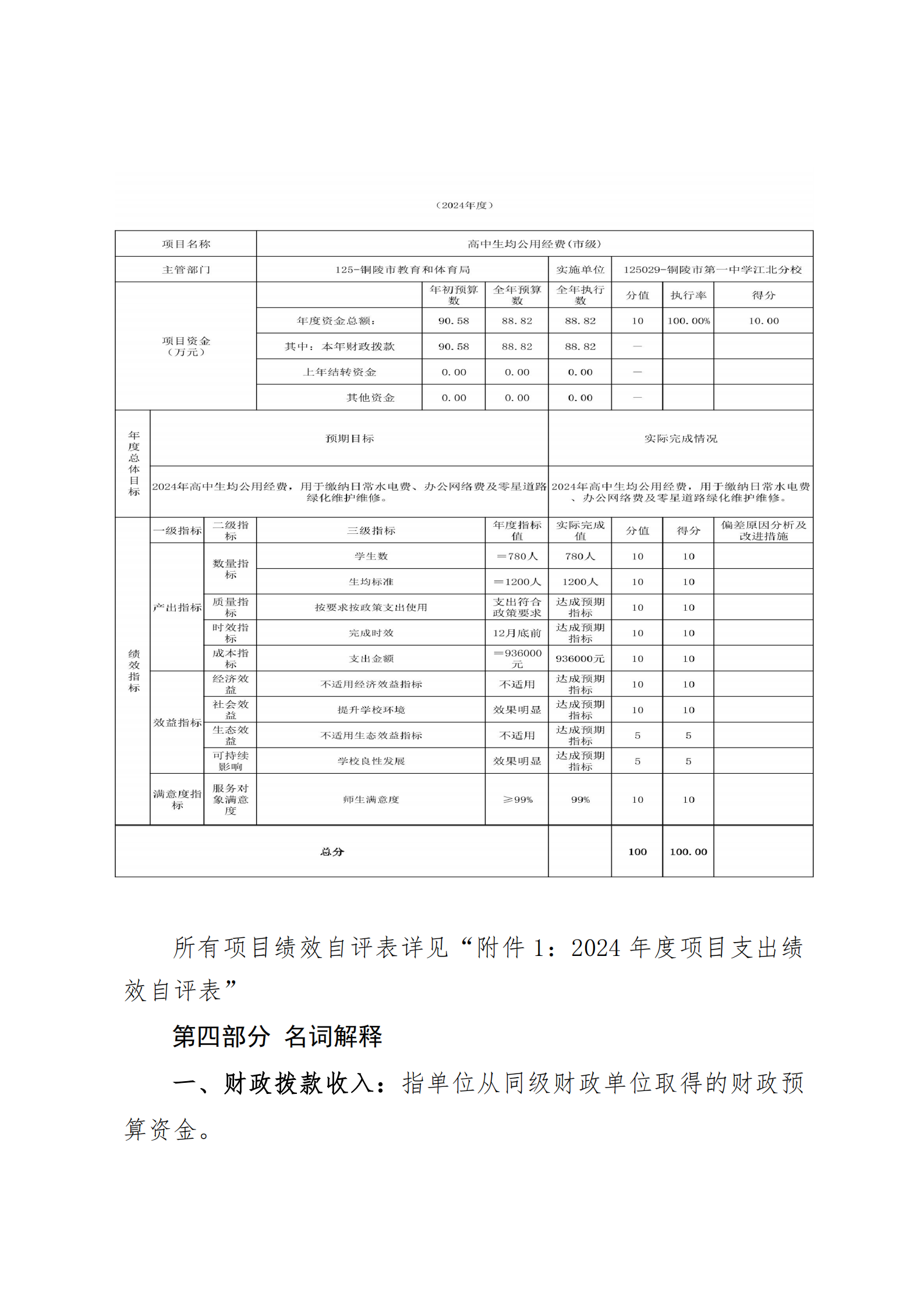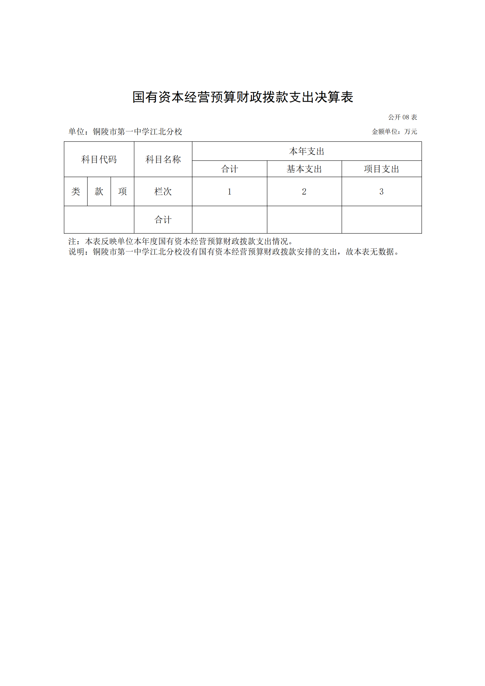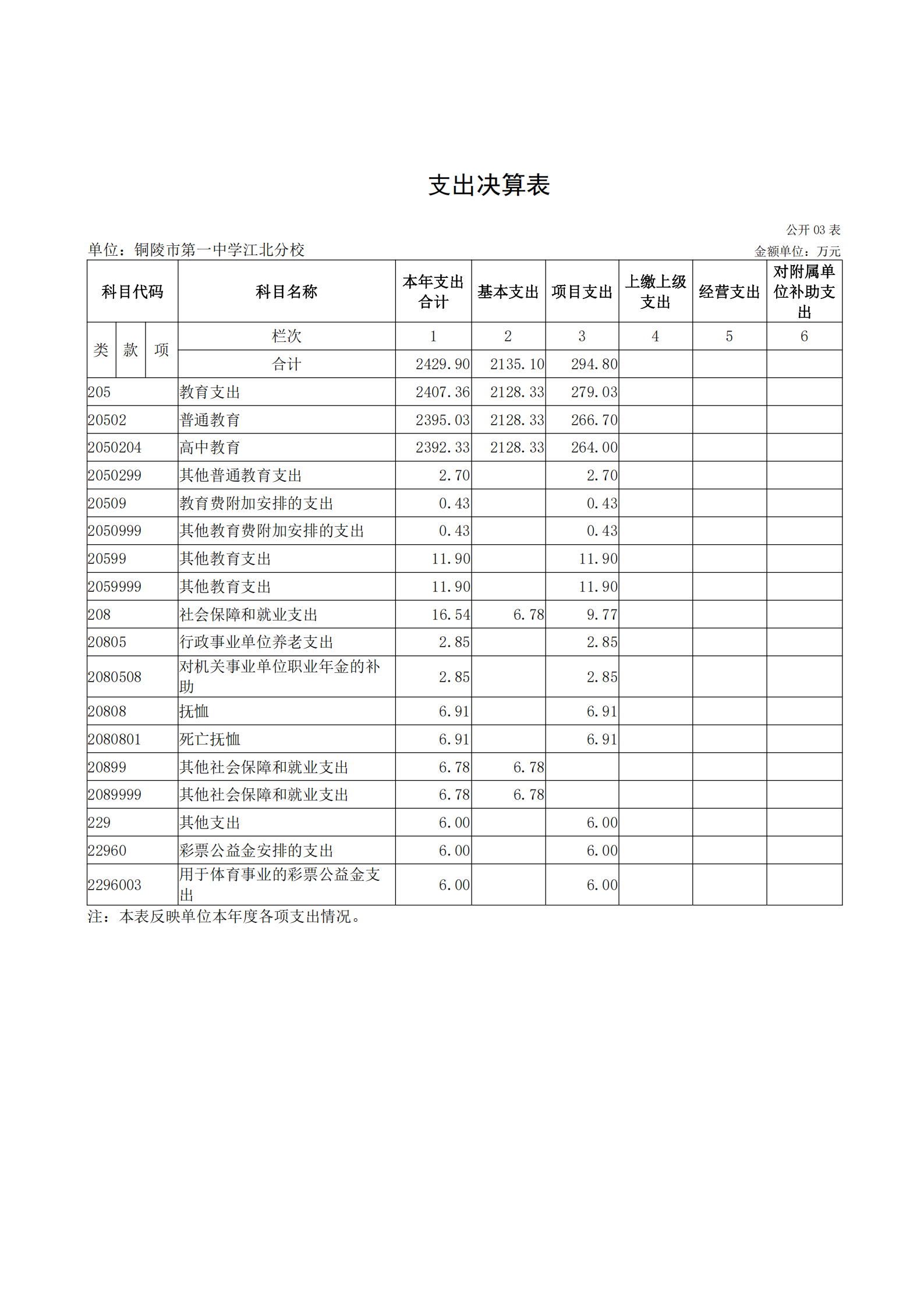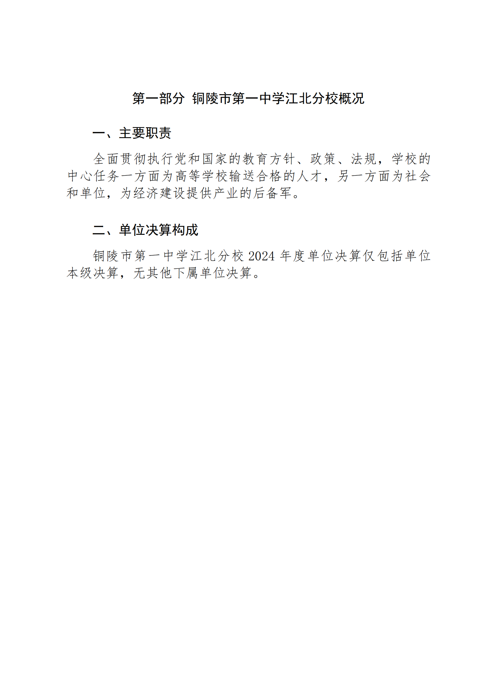 铜陵市第一中学江北分校2024年度一般公共预算财政拨款“三公”经费支出决算