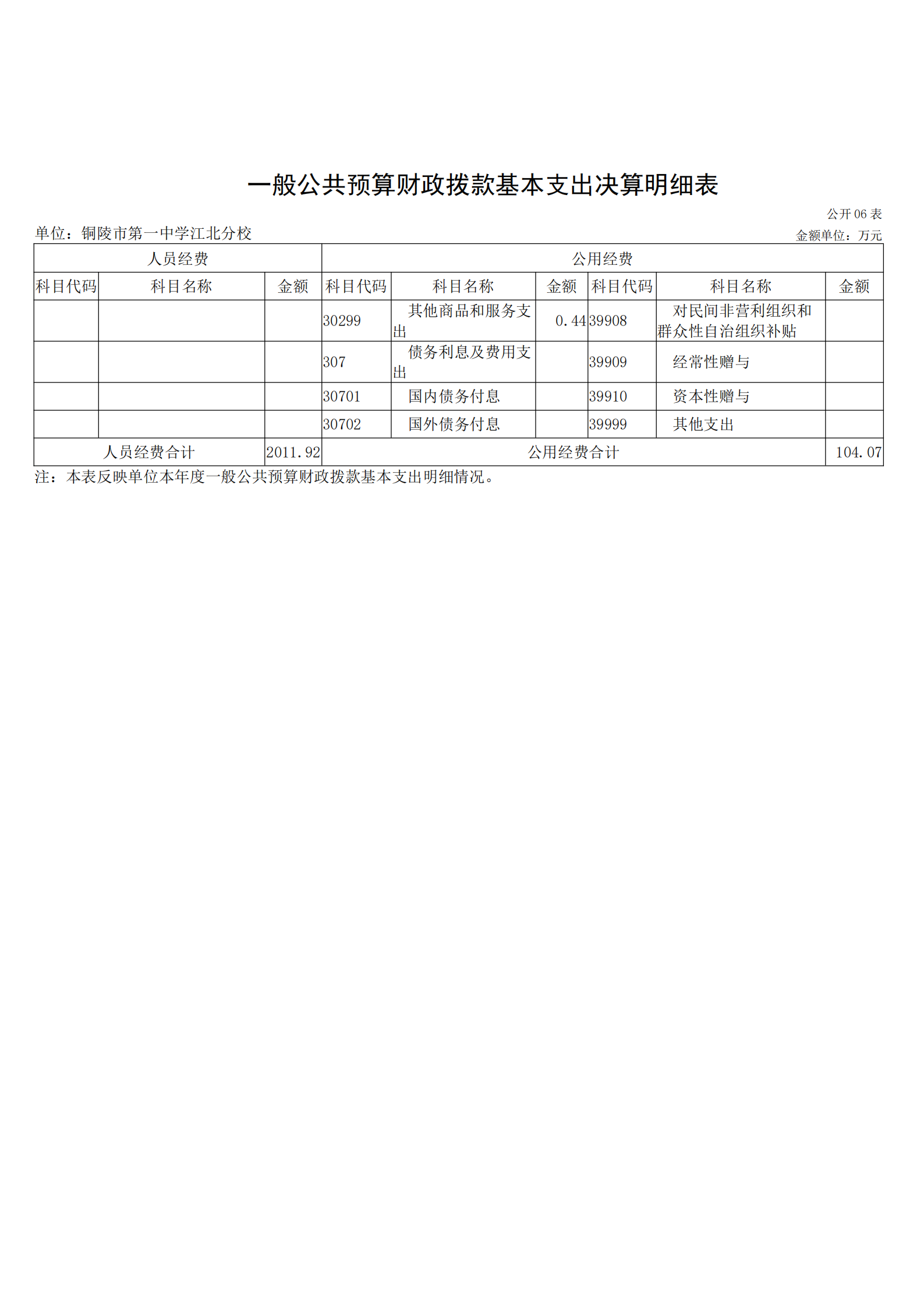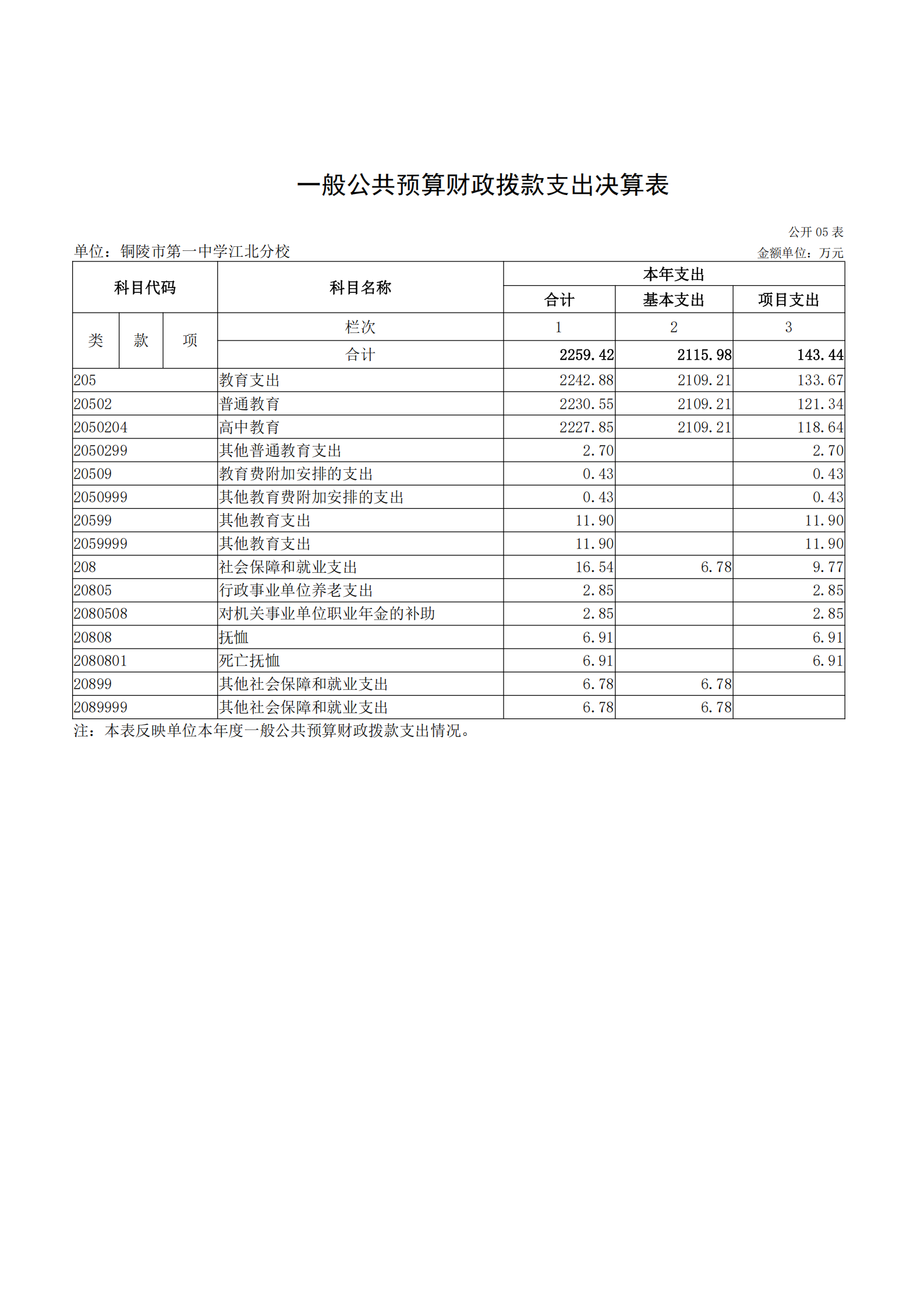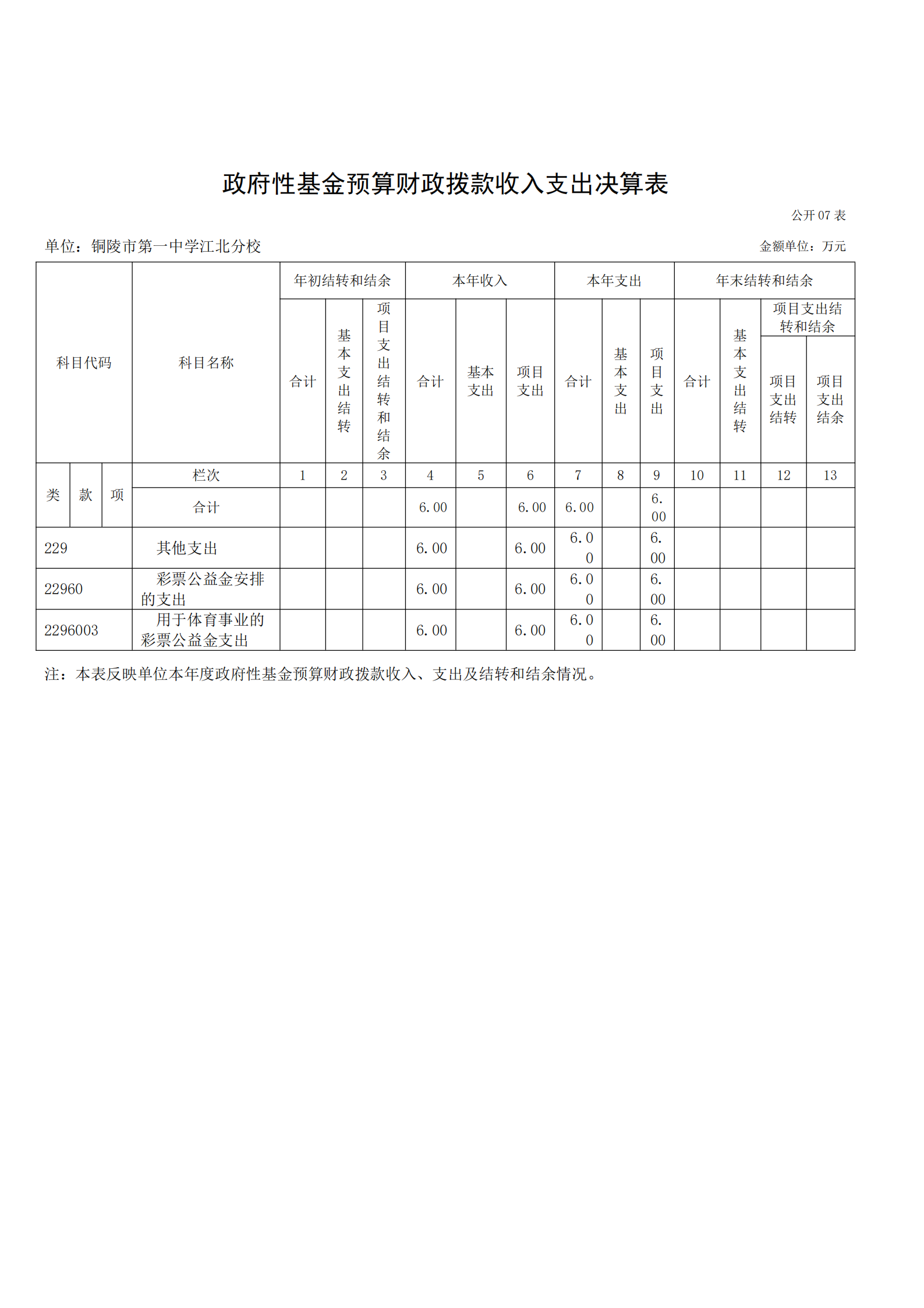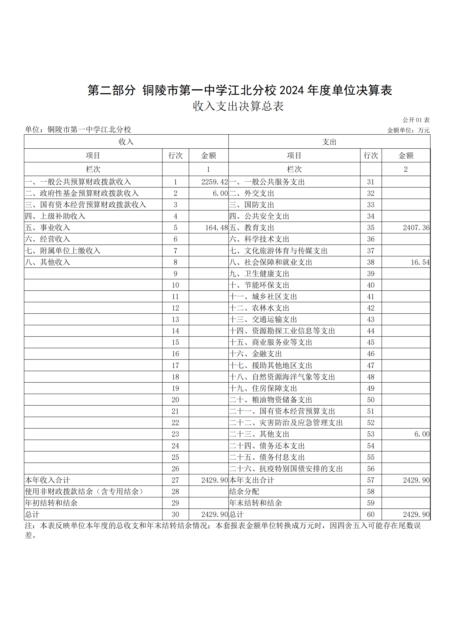 铜陵市第一中学江北分校2024年度一般公共预算财政拨款“三公”经费支出决算