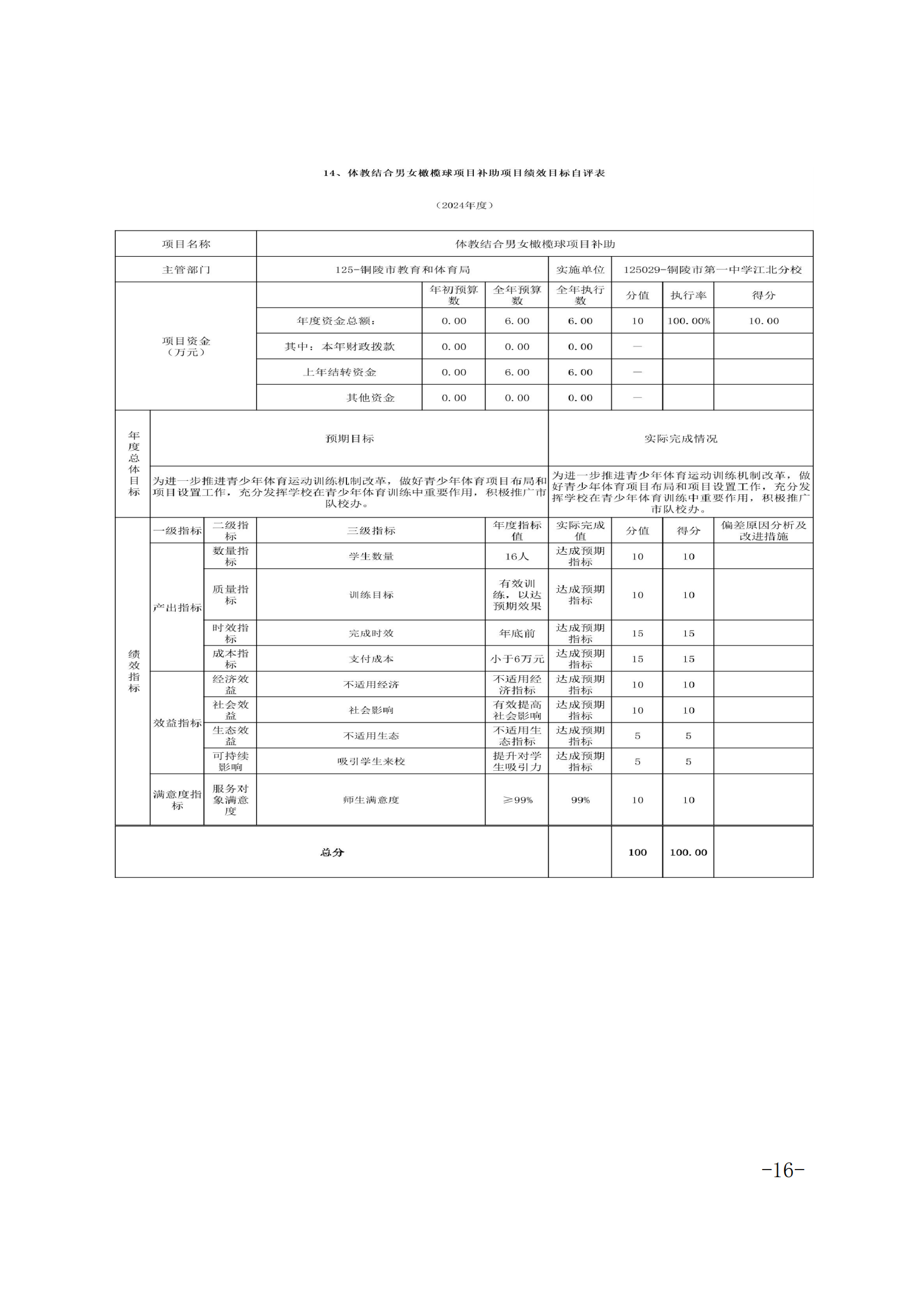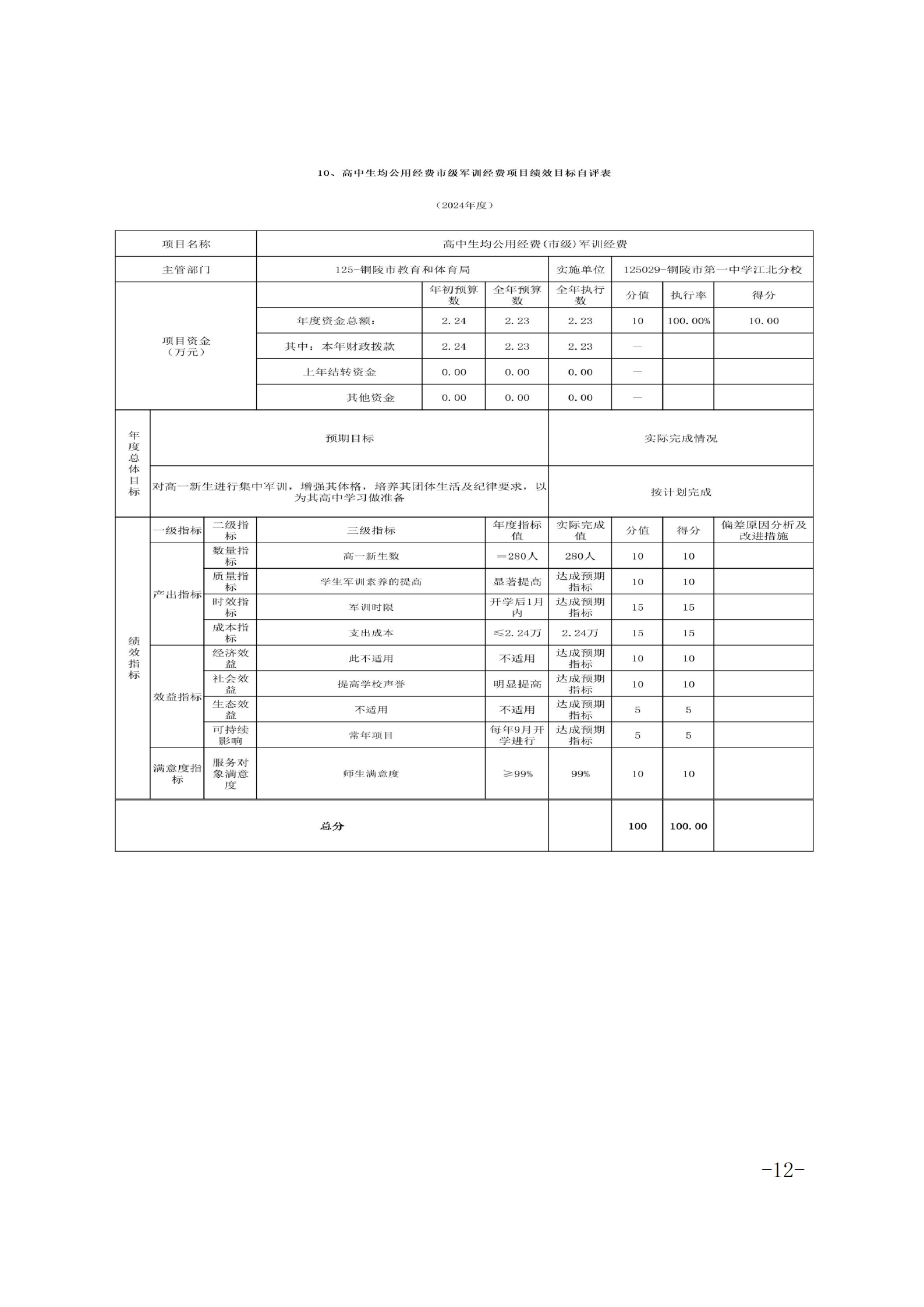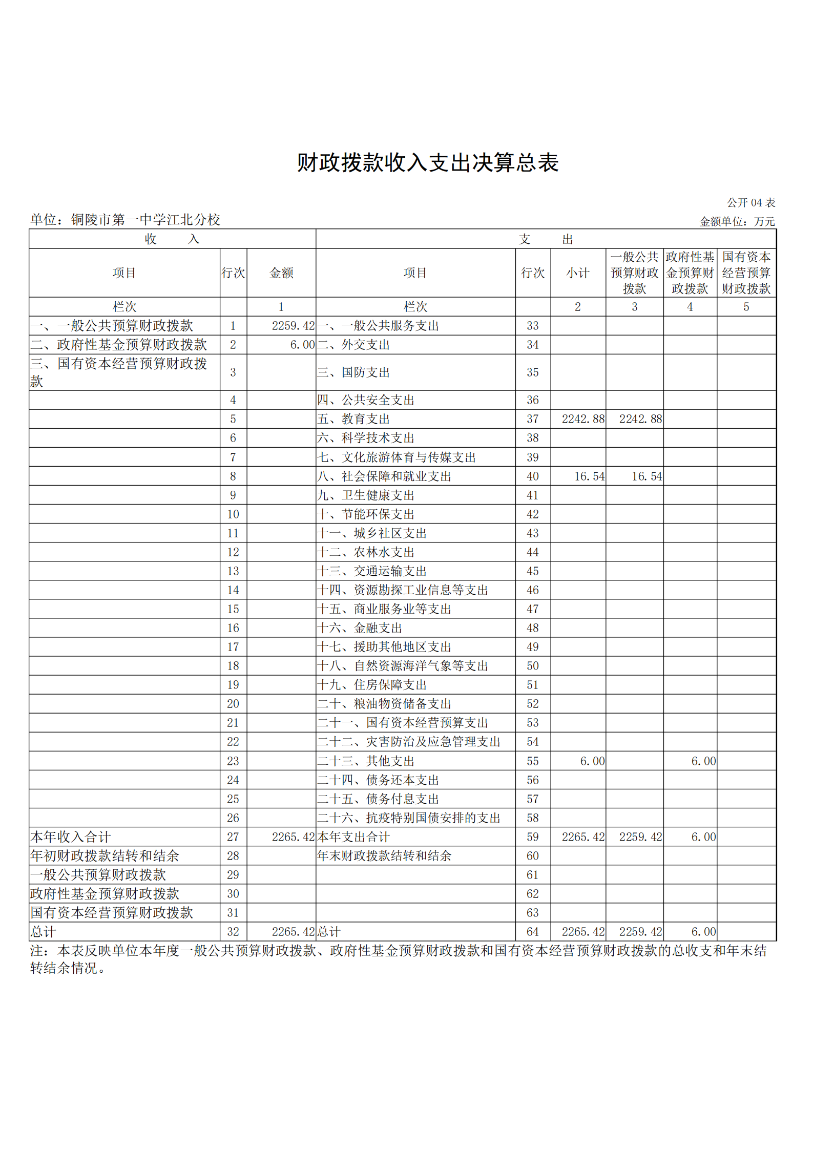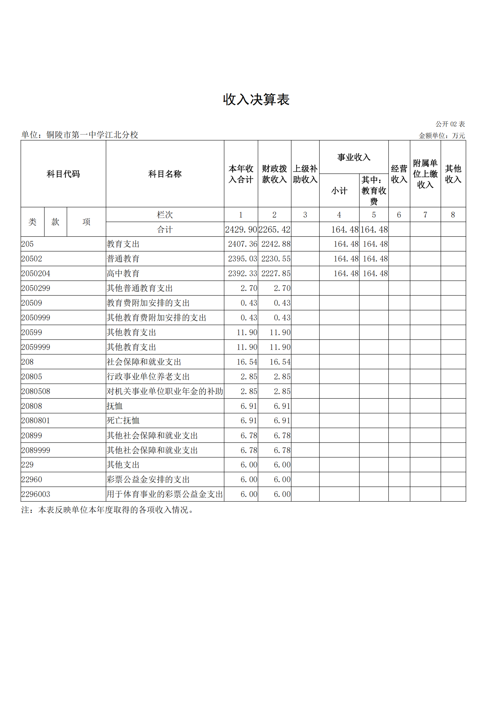 铜陵市第一中学江北分校2024年度一般公共预算财政拨款“三公”经费支出决算