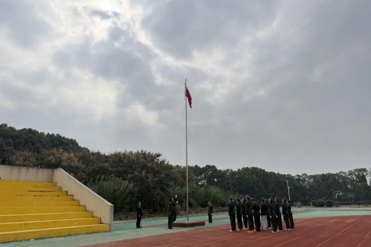 10月27日上午10时,市一中江北分校全体师生整齐列队,庄严肃立,共同参加"我运动,我快乐"主题升旗仪式。在雄壮的国歌声中,五星红旗冉冉升起。国旗班队员身着笔挺制服,迈着铿锵有力的正步,以标准规范的动作为护卫国旗。他们神情肃穆,步伐整齐划一,充分展现了我校学子的精神风貌。鲜艳的五星红旗迎风飘扬,与师生们蓬勃向上的精神面貌交相辉映,为校园增添了无限生机。