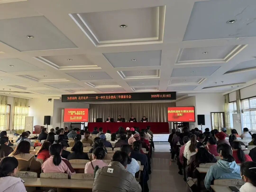 为深入贯彻家校协同育人理念,精准对接家长教育需求,及时反馈学生成长动态,11月19日,市一中江北分校以“为爱相约 花开有声”为主题,分阶段、有重点地召开高二年级家长会议。本次会议通过集中汇报与分班交流相结合的形式,搭建起学校与家庭深度沟通的平台,为高二学子关键成长阶段凝聚家校共育的强大合力。