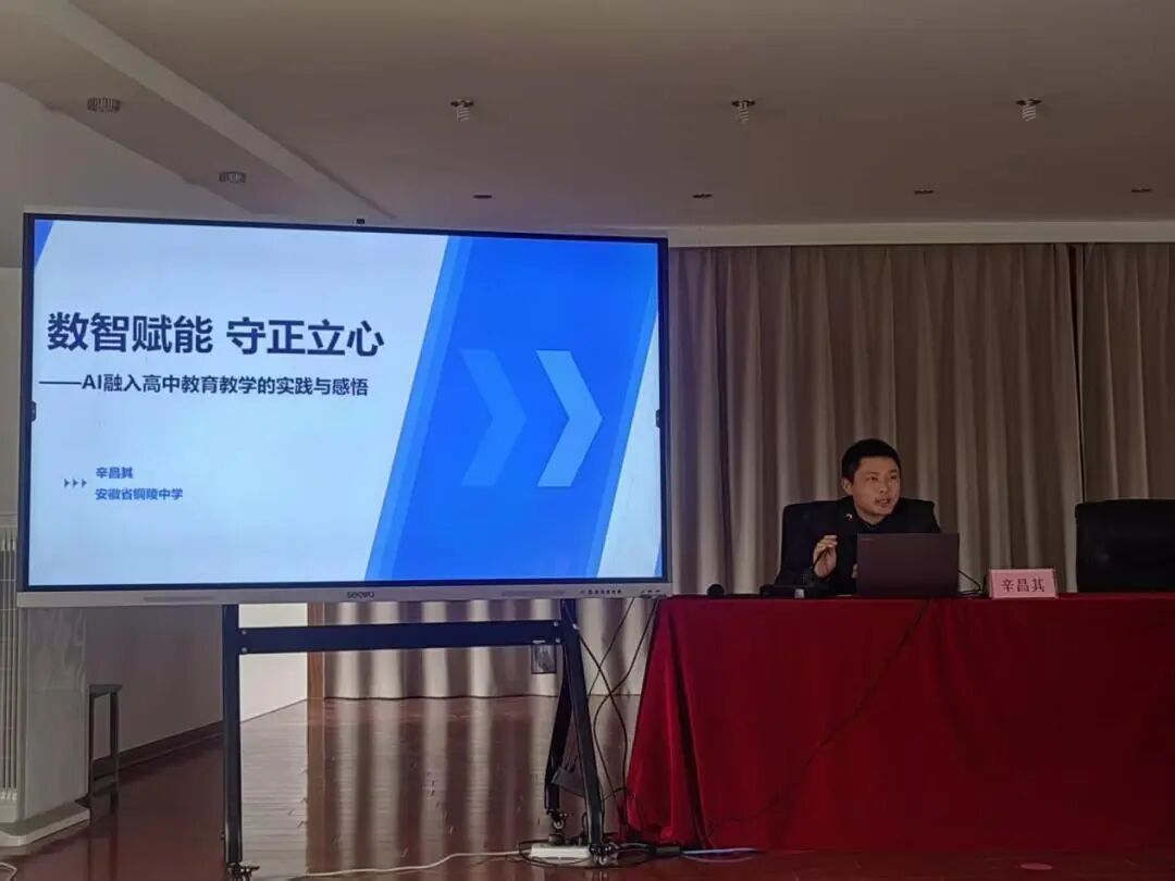 其次,在“AI工具赋能教学的实战技巧”部分,辛校长提供了极具操作性的指导。他对比了主流大模型在教育场景中的适配性,提出了选型策略;分享了挖掘AI教学优势的路径与应用要点;重点讲解了与大模型高效对话的提示语设计规律。此外,他还展示了利用AI制作数字人视频课程、生成学科交互式资源、创建助教助学智能体以及优化教育常规管理的具体案例与路径,为教师们打开了一扇扇实践探索的窗口。