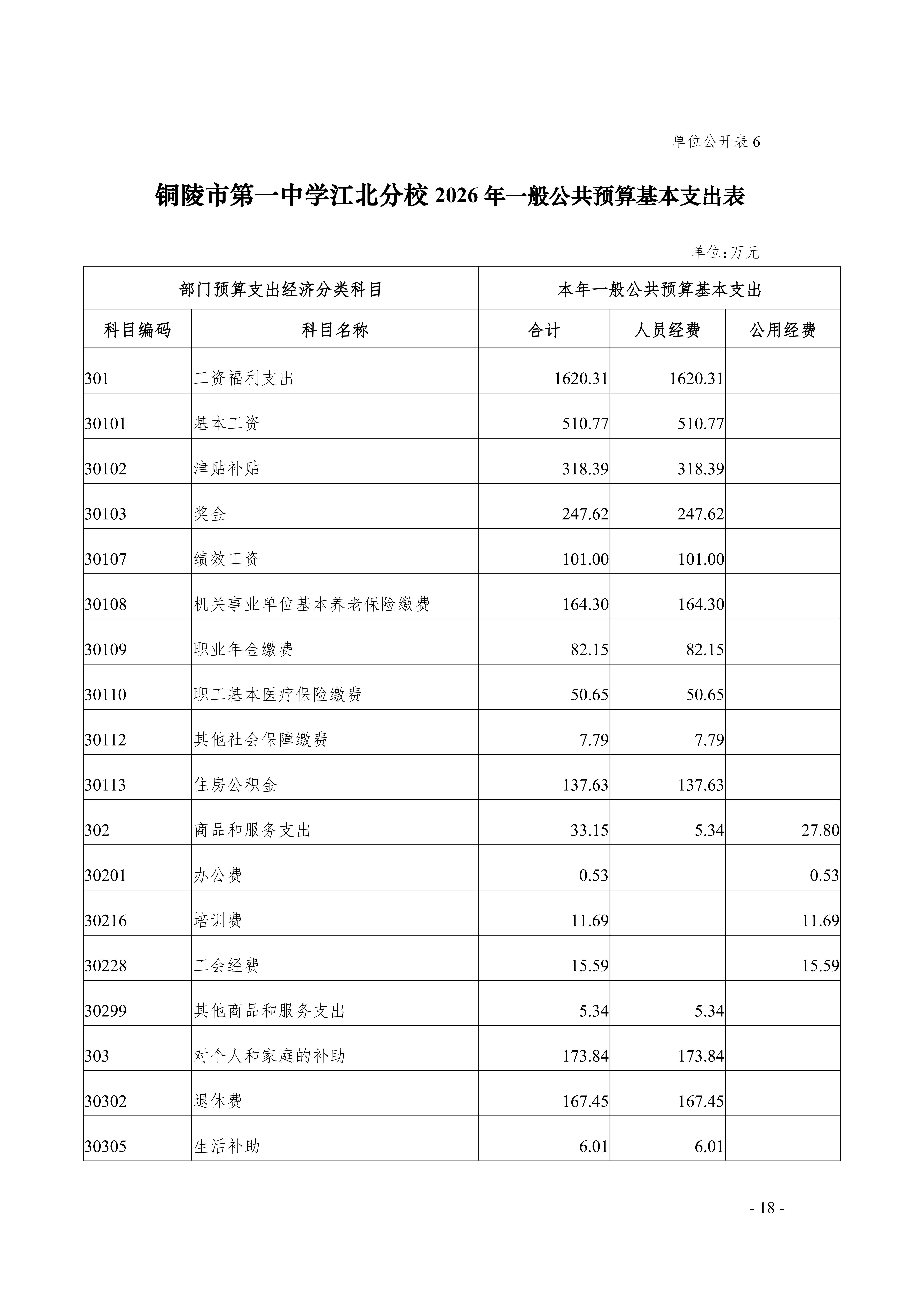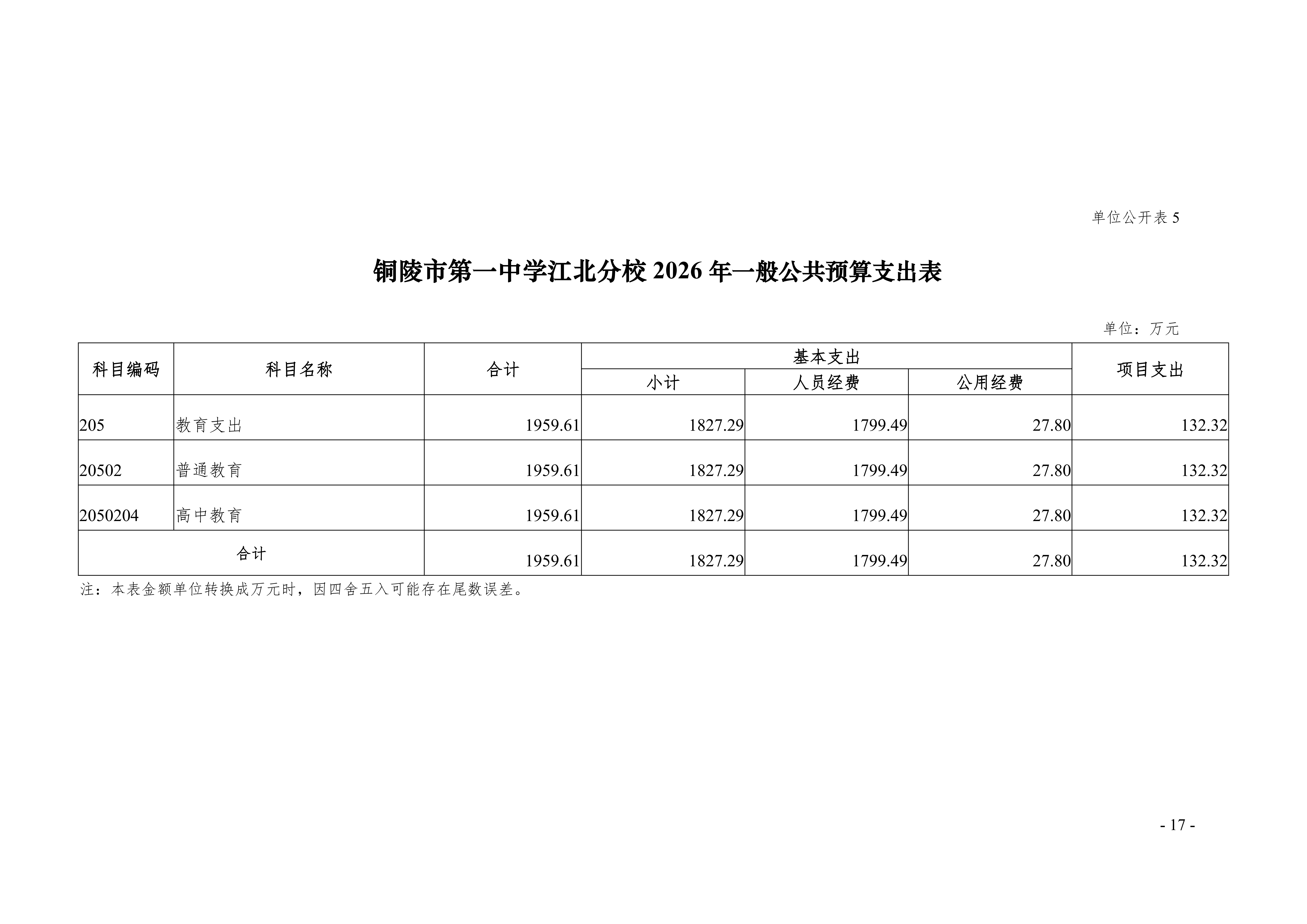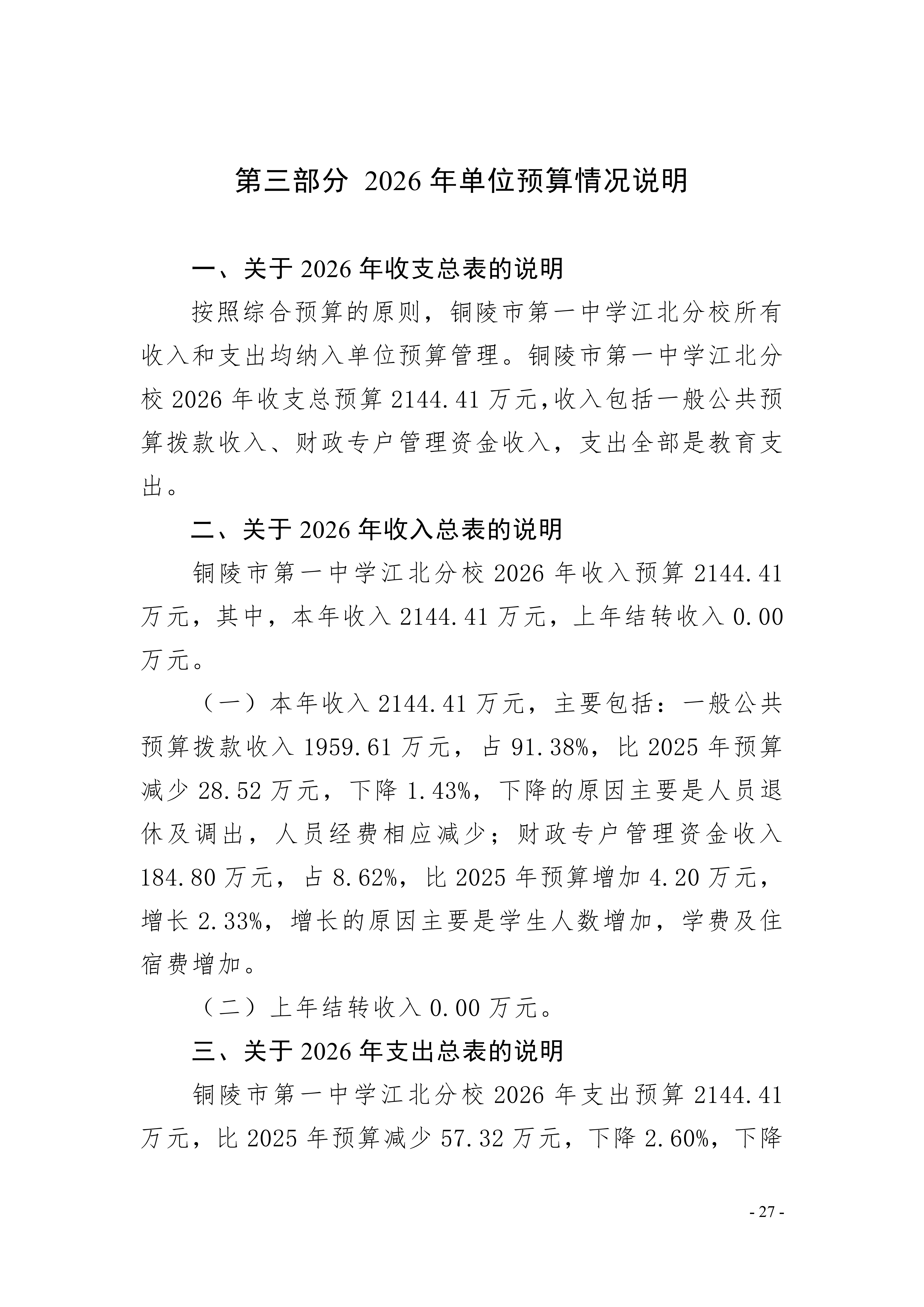 2026年铜陵市第一中学江北分校单位预算公开