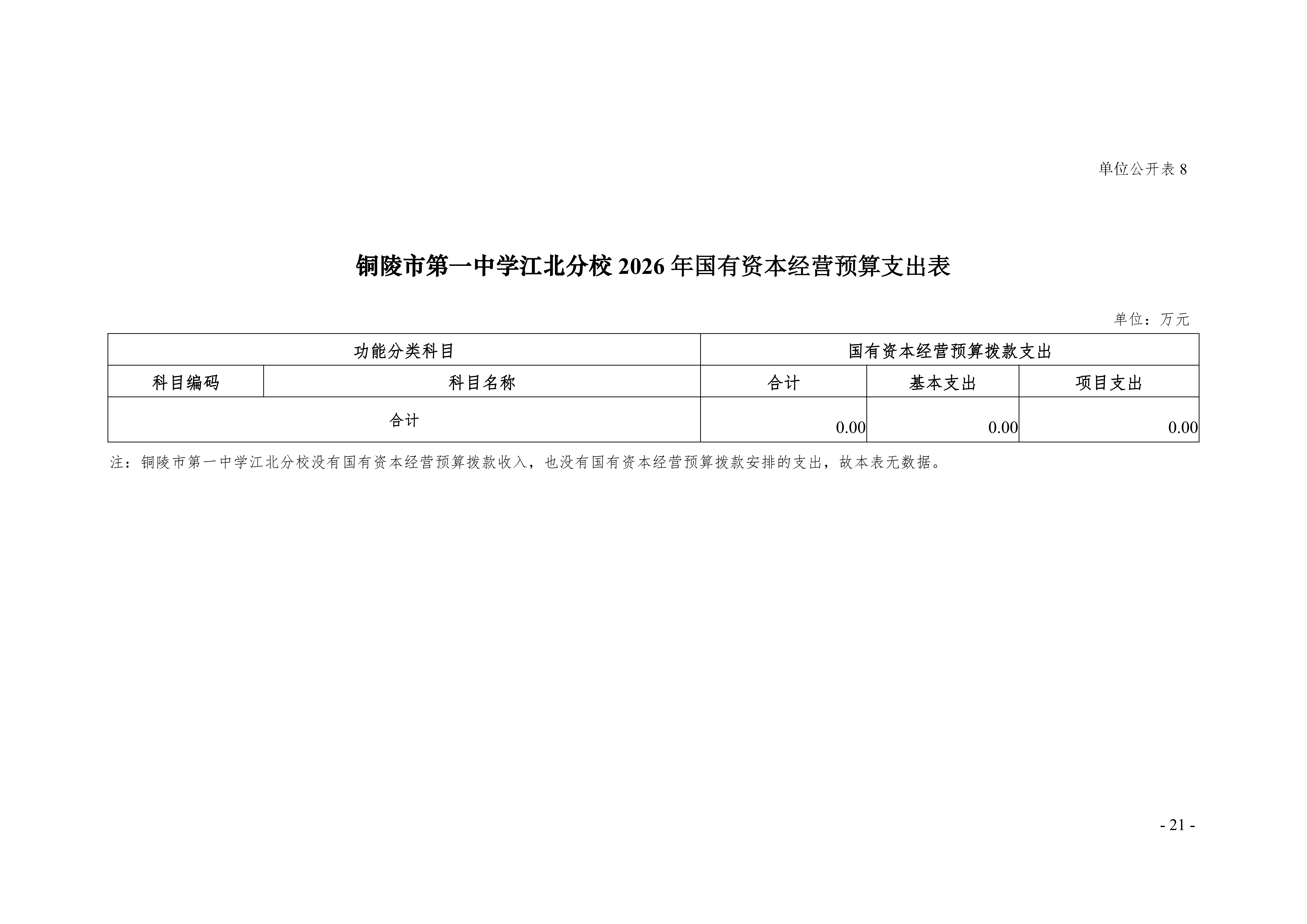 2026年铜陵市第一中学江北分校单位“三公”经费预算公开