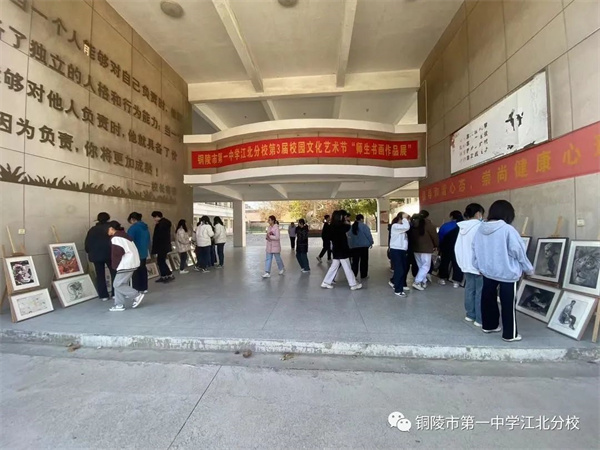 本届艺术节在学校全体师生共同努力下,正有条不紊按既定的计划进行,校园文化艺术节的举办,为同学们充分施展才华、张扬个性提供了广阔舞台,使校园到处洋溢着朝气和活力,培养了学生们的创新意识和实践能力,提高了学生们的审美情趣和艺术素养,丰富了校园文化生活,营造了良好的学习氛围,彰显了市一中江北分校坚持“育人为本、全面发展,学有特长、校有特色”的办学宗旨。市一中江北分校全体师生将以本次活动为契机,以团队和谐之力、求真务实之风、创造求新之智,发奋进取之心、鲲鹏展翅之志,努力开创学校教育教学工作的新局面。